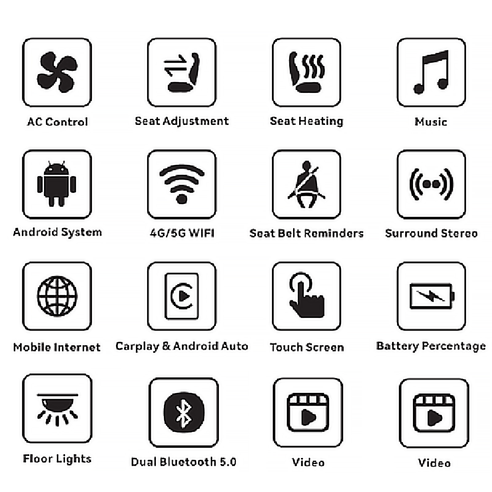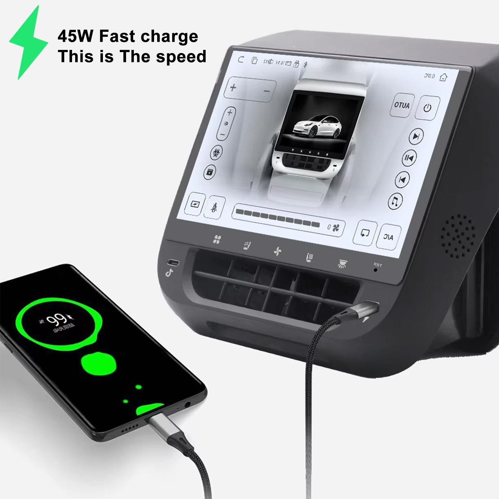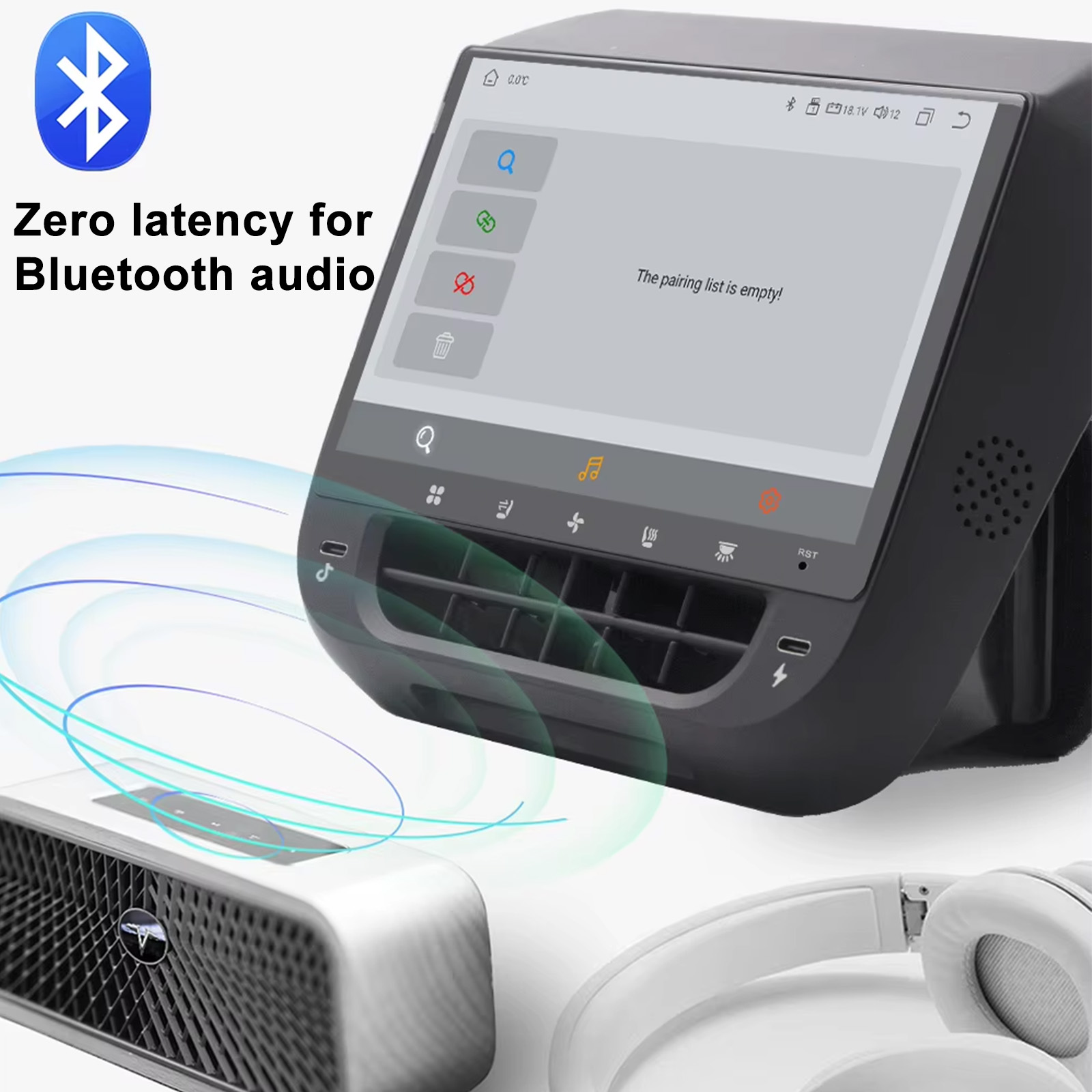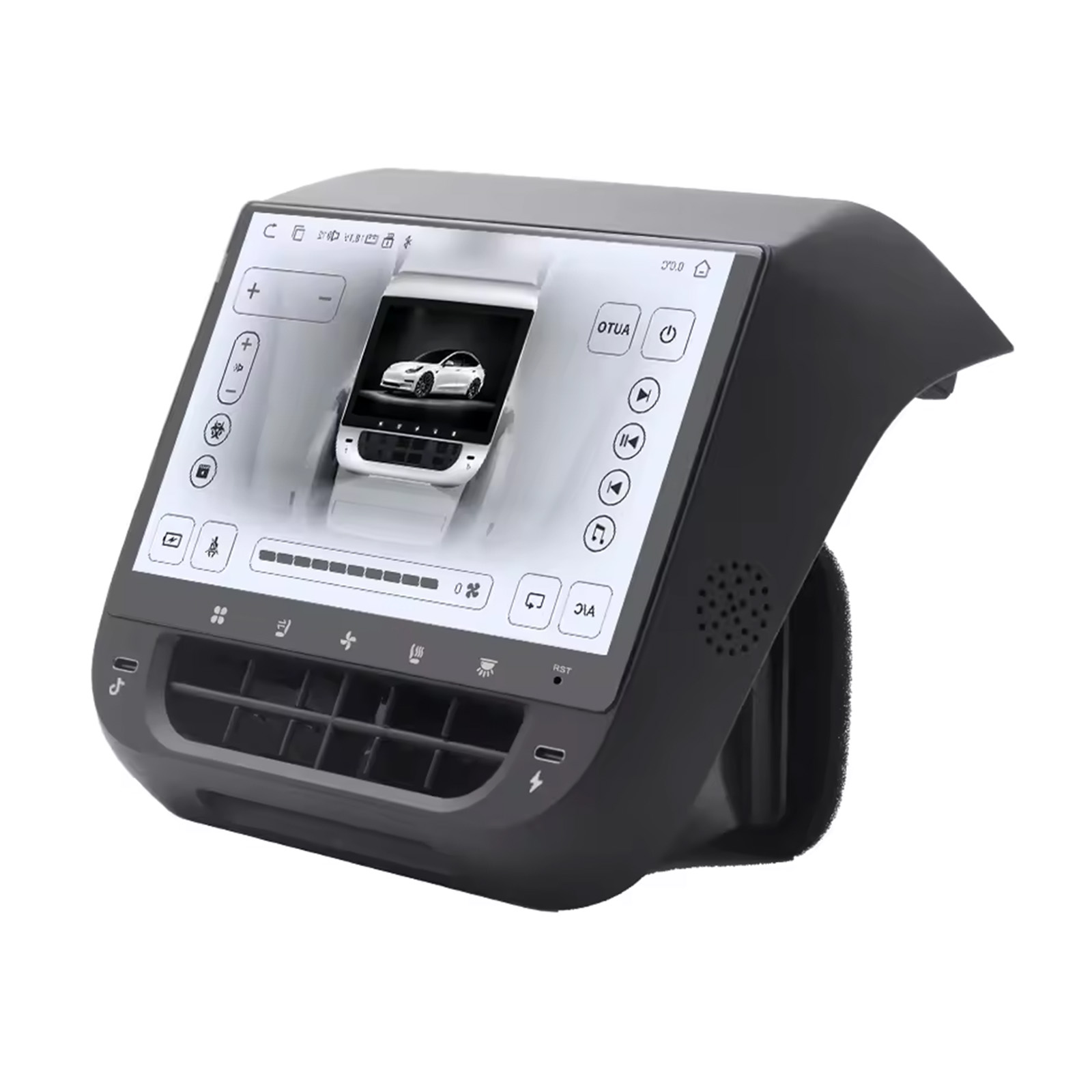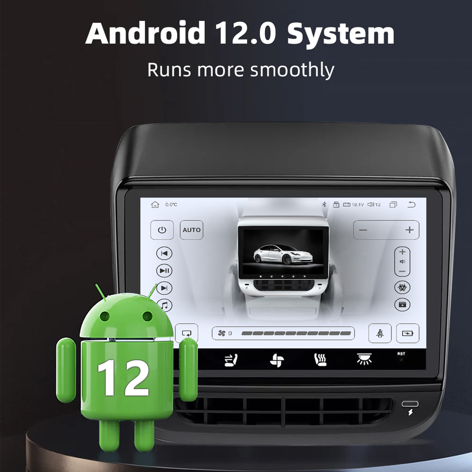 Diversified Functions: Through this rear display screen, we can realize the functions of air conditioning control, seat heating, atmosphere lamp control, internal and external circulation, Light, entertainment music & movie, 2 External C Port etc