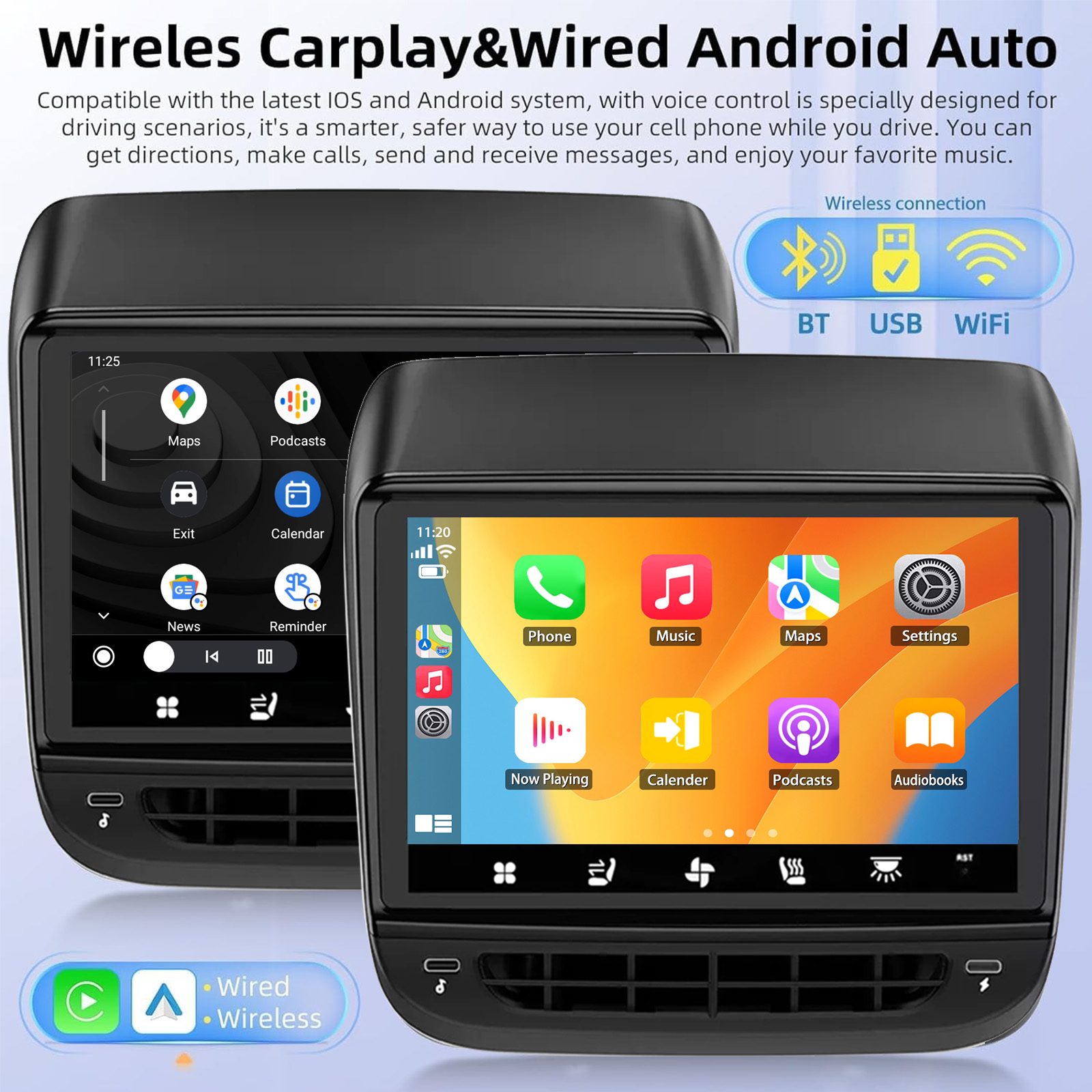 Support Android auto and Carplay: You can easily connect the rear entertainment display to your phone