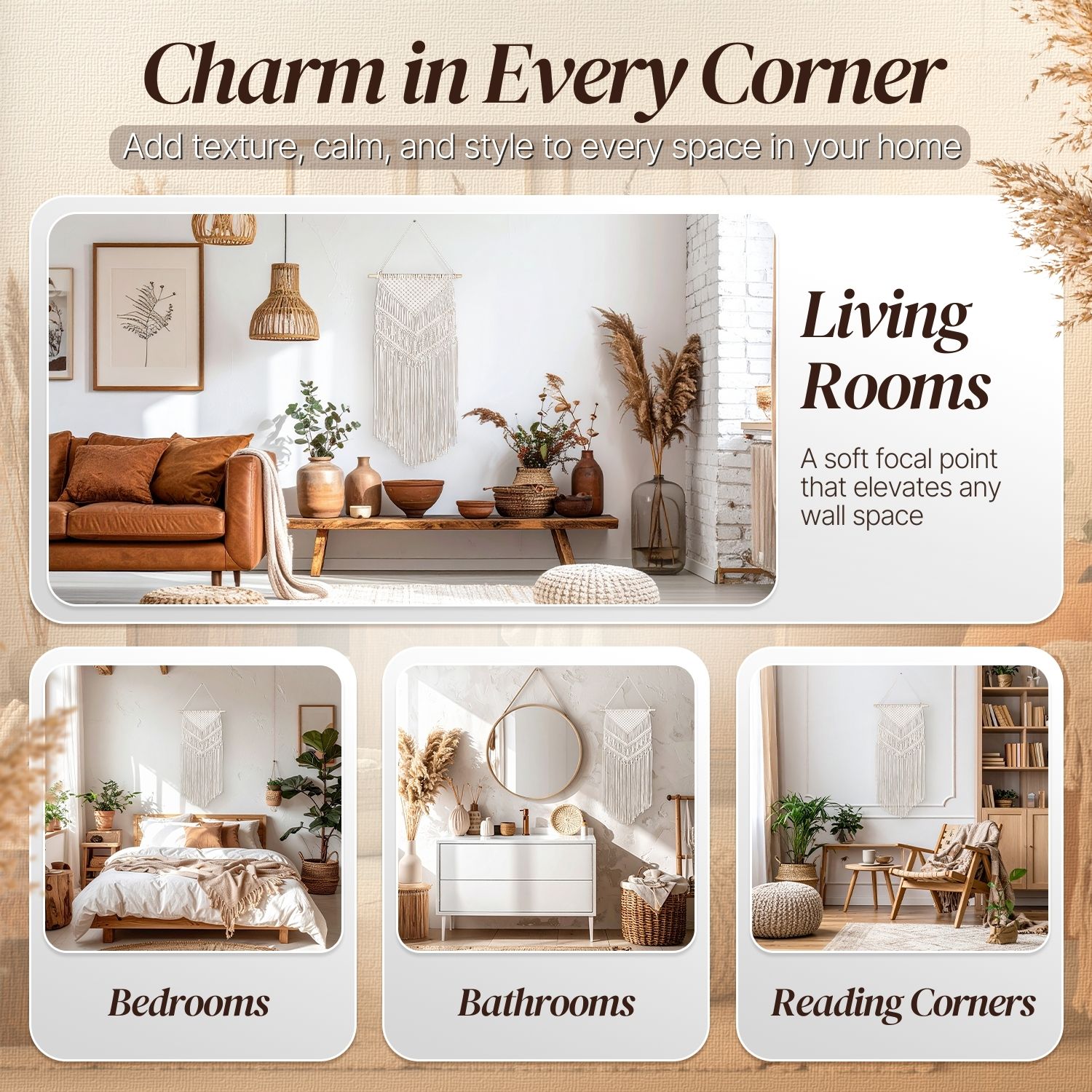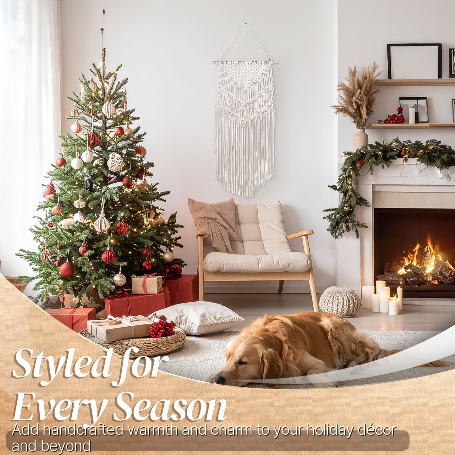 Designed with simple style, this wall macrame bunting/banner piece will look great in different modern urban interiors like bohemian, Scandinavian, rustic, contemporary, farmhouse, and many others. It will decorate your sweet home or another lovely place! This little piece is great for giving your home decor with that natural, bohemian edge, or would be elegant for an addition to your wedding decor and would match perfectly with your furniture.Feature: