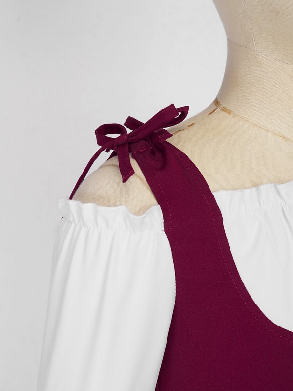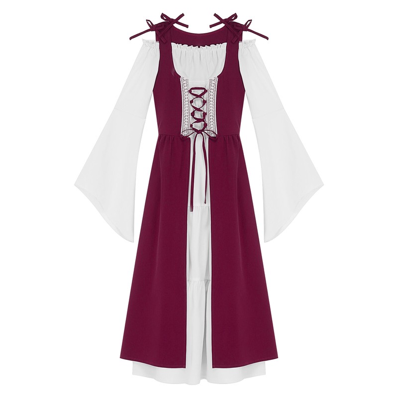 Fake two piece and block color design, two layers hem is full length. Full of medieval renaissance style, retro and attractive.