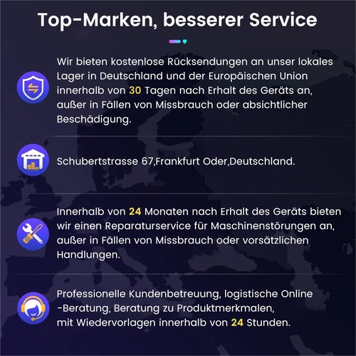 3. Wenn aus irgendeinem Grund Probleme mit dem Kauf auftreten, kontaktieren Sie uns bitte, bevor Sie ein Feedback hinterlassen. Wir freuen uns, mit Ihnen zusammenzuarbeiten, um das Problem zu lösen.