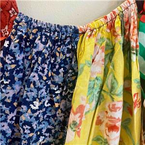 Unless otherwise stated garment measurements are taken this way: BUST armpit to armpit, HIP 8 inches below waist, LENGTH from top of shoulder to hem, SLEEVE from underarm to end of sleeve, INSEAM from crotch to cuff.Elastic waist measurements are taken unstretched to stretched.Items are measured flat with a measuring tape and then doubled when required.