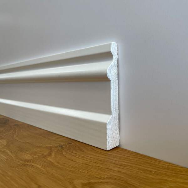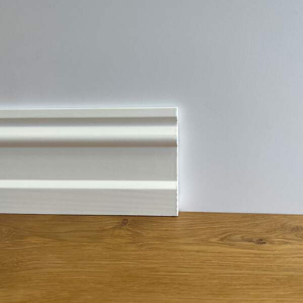Presentiamo i nostri battiscopa Top di Gamma in pino massello di prima scelta, rivestiti con una brillante laccatura bianca (si tratta di un bianco base, sinottico o RAL 9016). Progettati con precisione e curati in ogni dettaglio, i nostri battiscopa premium trasformano ogni ambiente in uno spazio di lusso raffinato.