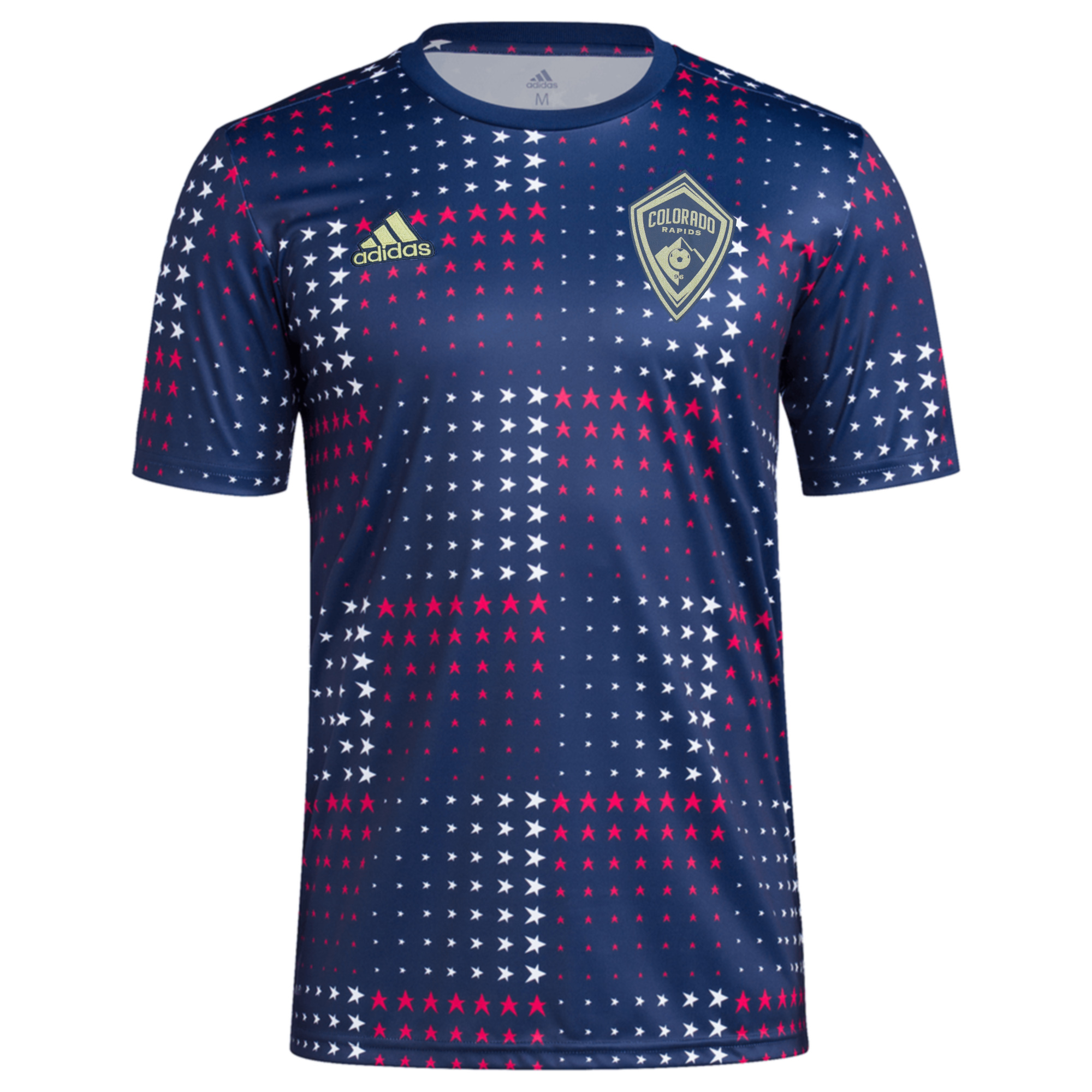 A constellation of red and white stars shine across this Adidas MLS American Pre-Match Top. Union players wear this top during pre-game warmups to help celebrate America's Independece Day. This top is made with moisture-wicking AEROREADY fabric to keep you comfortable on and off the field. Men's sizing.