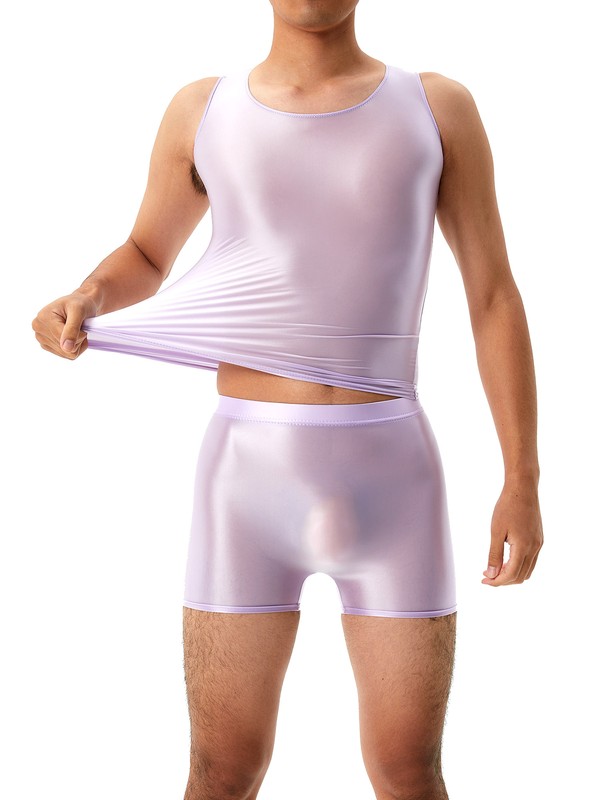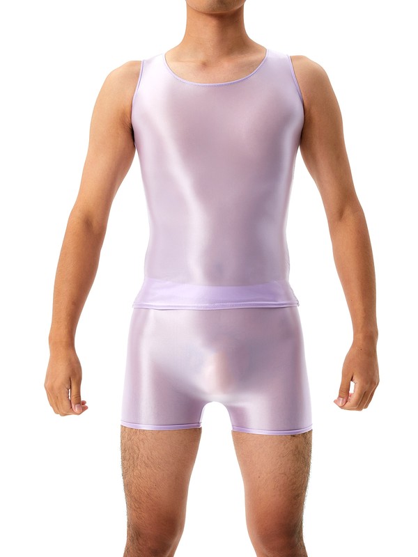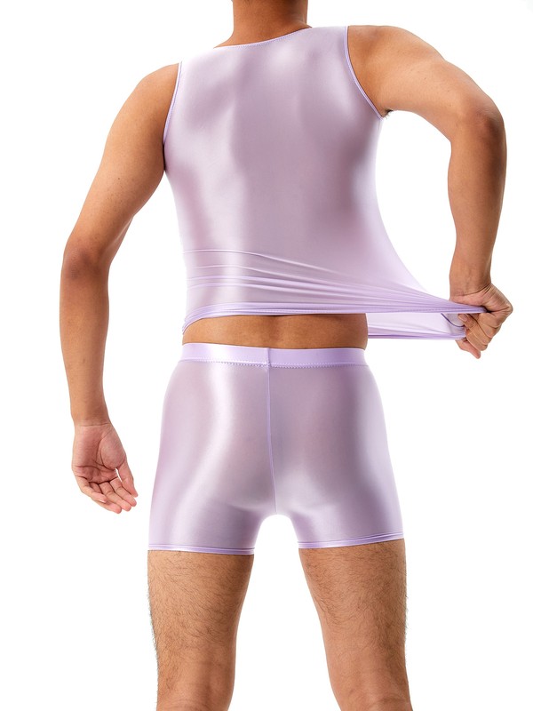 Mens Glossy U Neck Tank Tops Solid Color Sleeveless Crop Top Vest.