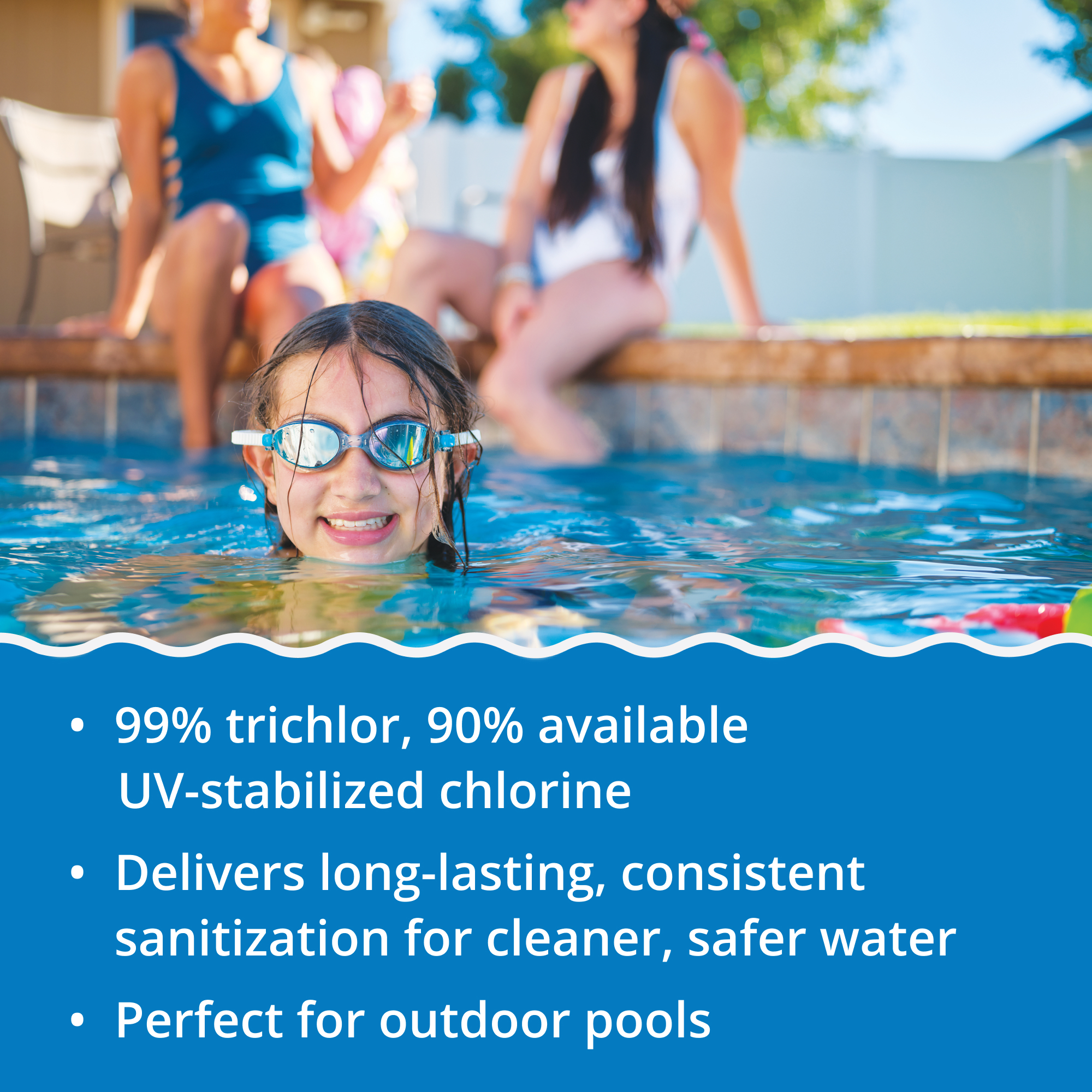 Sanitation and Disinfection is the most important aspect of good pool water chemistry, and powerful In The Swim 3” chlorine tablets are 90% available chlorine, and sun-stabilized, to make it easier to maintain any outdoor pool. Our chlorine tablets are made with 99% Trichlor, without fillers and binders found in cheaper tablets that dissolve too rapidly and gum-up a chlorine feeder.