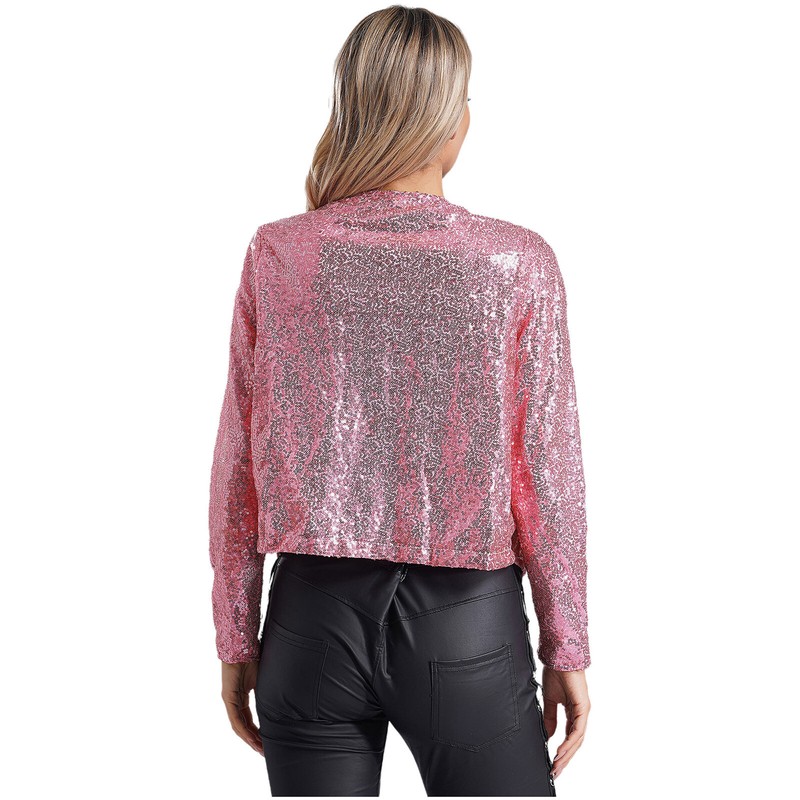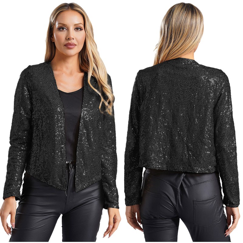 All over sequins make the outerwear dazzling and eye-catching, and will bring a perfect stage effect, which is perfect for party and performance.