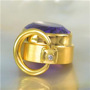 Solid genuine 925 Sterling Silver ~ 18K Gold-plated, HUGE genuine natural purple Amethyst from Bolivia and a genuine natural Diamond gemstone