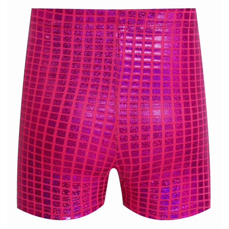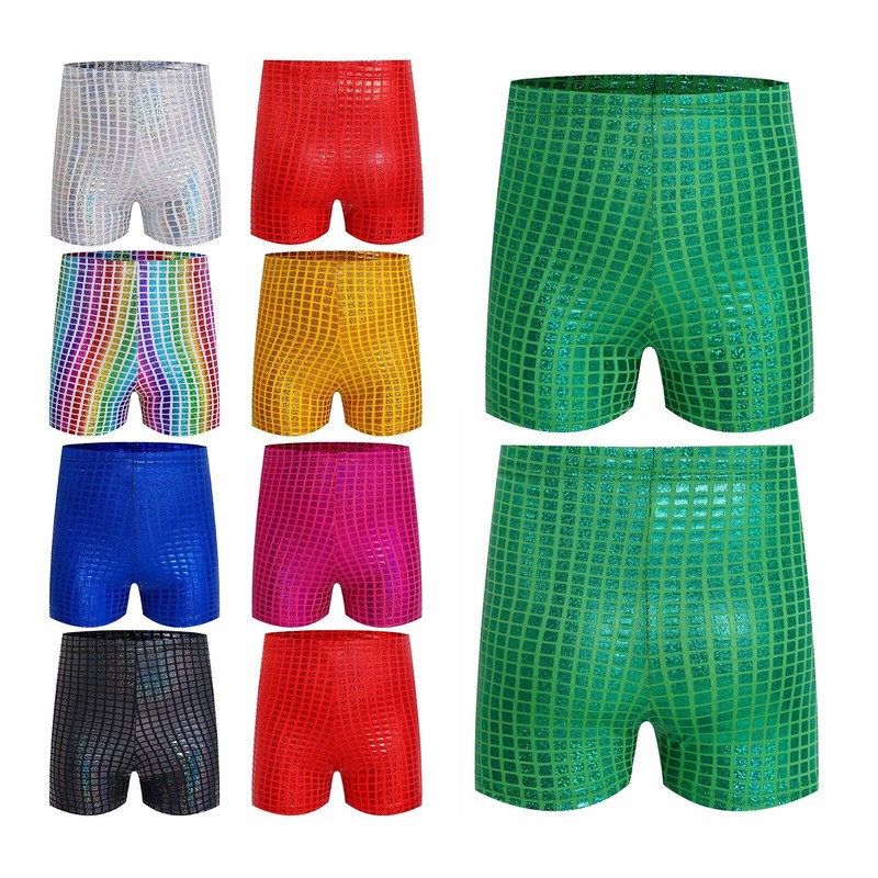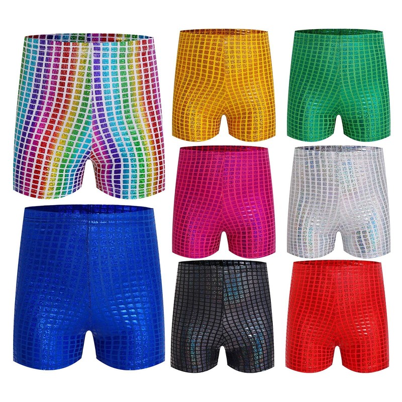 Kids shorts with metallic plaid that sparkle under the light to make your child stand out from the show.