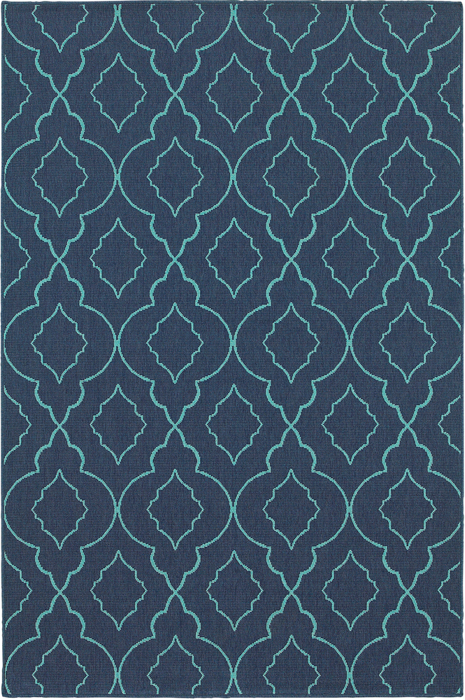 Blue Waves Swirls Curls Ovals Geometric Area Rug 7541B - Aprx 3' 7" x 5' 6"