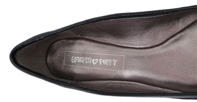 Rich black patent leather trim and piping
