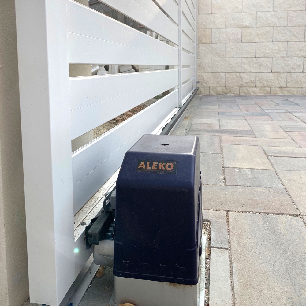 ALEKO AR1400 Basic Sliding Gate Opener Unit for sliding Gate. This gear rack sliding gate opener provides exceptional starting torque and continuous operation which makes it ideal for most applications. Constructed with an aluminum alloy chassis, it is corrosion resistant and light enough for one person to carry and install. Gate opener has a built-in radio receiver. For your safety, this model will stop and reverse if it encounters an obstruction on closing and stop when it encounters an obstruction on opening. RF hopping code technology prevents your remote code being accessible to others. User programmable and user erasable remote codes.