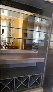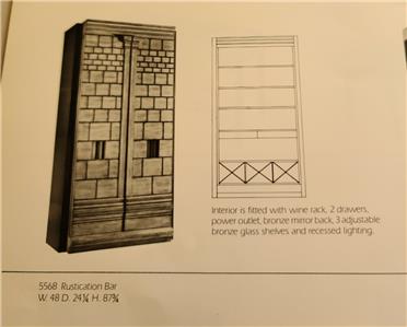 Offered here is this Amazing Baker Furniture Rustication Bar. It is in good condition, and is complete, but there is one side that has some scratches to the lacquered finish, on the top half. The rest of the piece is in great condition, and the side with the damage could easily be positioned against a wall. The piece should be cleaned before use. I am unsure of the exact age of this bar, but it is Baker, which is a reputable, high-end manufacturer that is known for its quality construction. The interior of this bar is fitted with a wine rack, 2 drawers, a power outlet, bronze mirror back, 3 adjustable glass shelves, and recessed lighting. It is featured on the cover of the Baker Furniture Façade Collection Catalog, which is also included with this piece. The bar is 87.75” tall, 48” wide, and 24.25” deep. It is an amazing high-profile piece that is sure to be a conversation starter in your home!