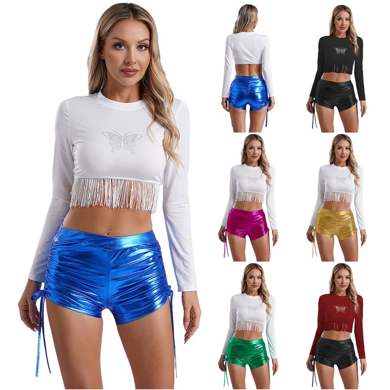 Long sleeve dance top with colorful bells, beads, swing gently with the footsteps and make a great sound.