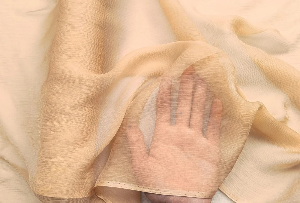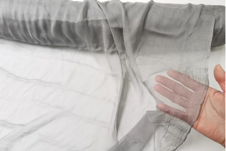 1)Material:100% Mulberry Silk Crinkled Georgette Chiffon Gauze,55" Wide,Light Weight,Soft and Crinkled