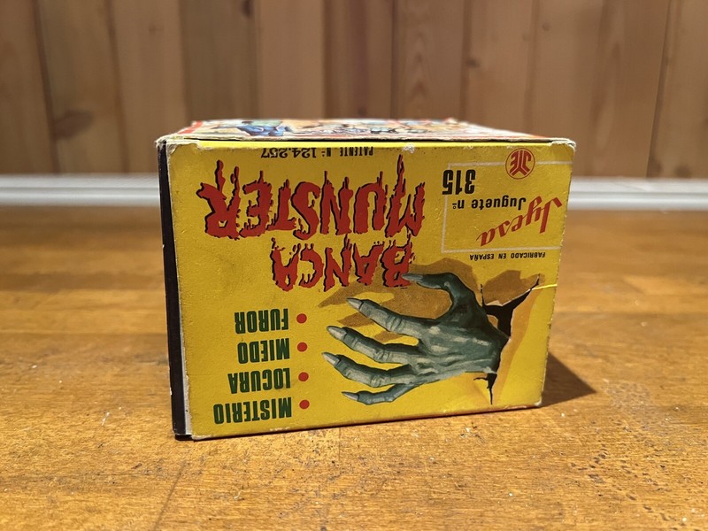 For all you Munsters fans and collectors, here’s a rare gem you won’t want to miss! This unique vintage piggy bank, made in Spain in the late 1960s to early 70s, features “The Thing” hand that grabs your coin, adding a fun and spooky twist to your savings. Housed in its original illustrated cardboard box, which boasts vibrant artwork on all sides, this collectible is sure to stand out in any collection. The box shows some wear consistent with its age (please refer to the photos), and the bank itself is untested and sold as is, but it displays beautifully. If you’re serious about Munsters memorabilia, there’s a 99.99% chance you don’t have this one—it’s an incredibly rare find, and it may be years before you come across another like it. Don’t miss the opportunity to add this nostalgic piece to your collection!