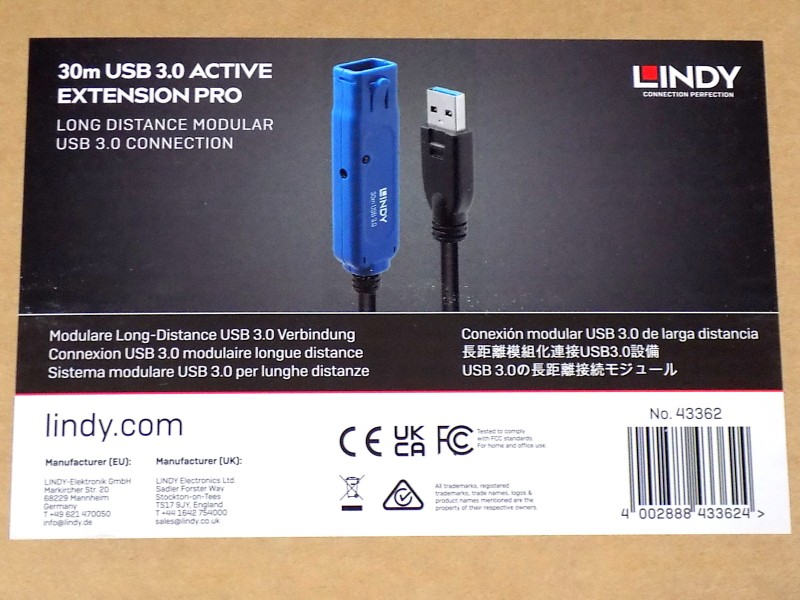 Diese 30m Aktivverlängerung kann allein oder als Teil des Lindy USB 3.0 Active Extension Systems Pro verwendet werden. Bei dem System handelt es sich um eine modulare Lösung, die mehrere USB 3.0 Aktivverlängerungskabel Pro und einen USB 3.0 Aktivverlängerungshub Pro kombinieren kann, um USB-Signale auf bis zu 4 USB-Geräte in bis zu 40m Entfernung (je nach Zusammenstellung des Systems) zu verteilen.