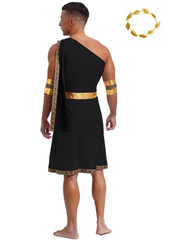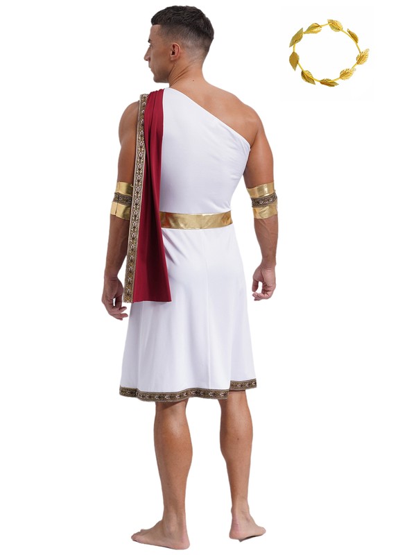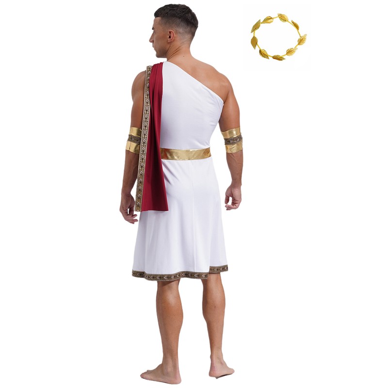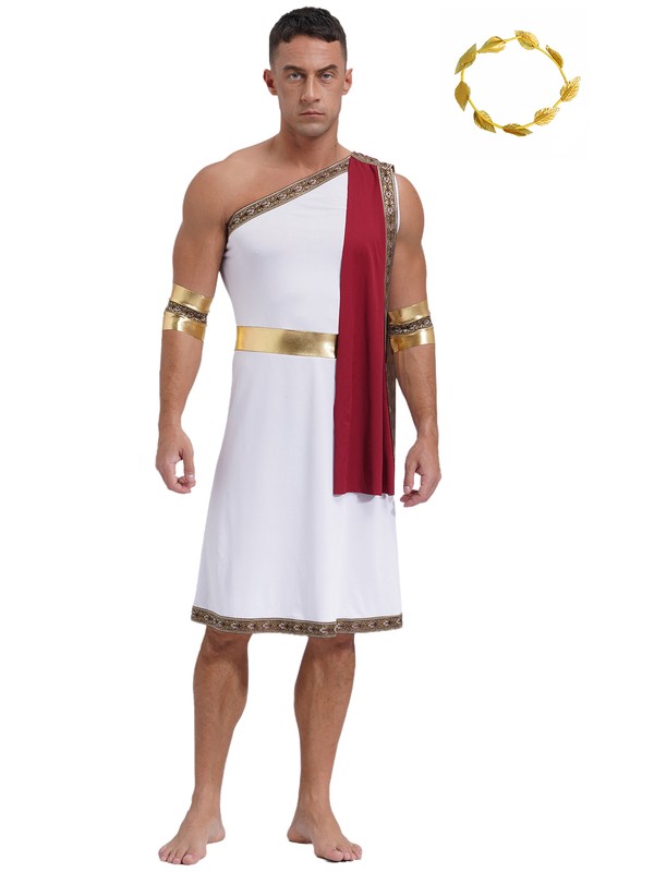 Men's Toga With Headwear Mythology Dress Up Trim Robe Theme Dresses Greek God