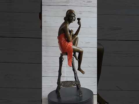 Gorgeous Champagne Lady Sculpture by J.E Mir Brown Red Patina Figurine Sale