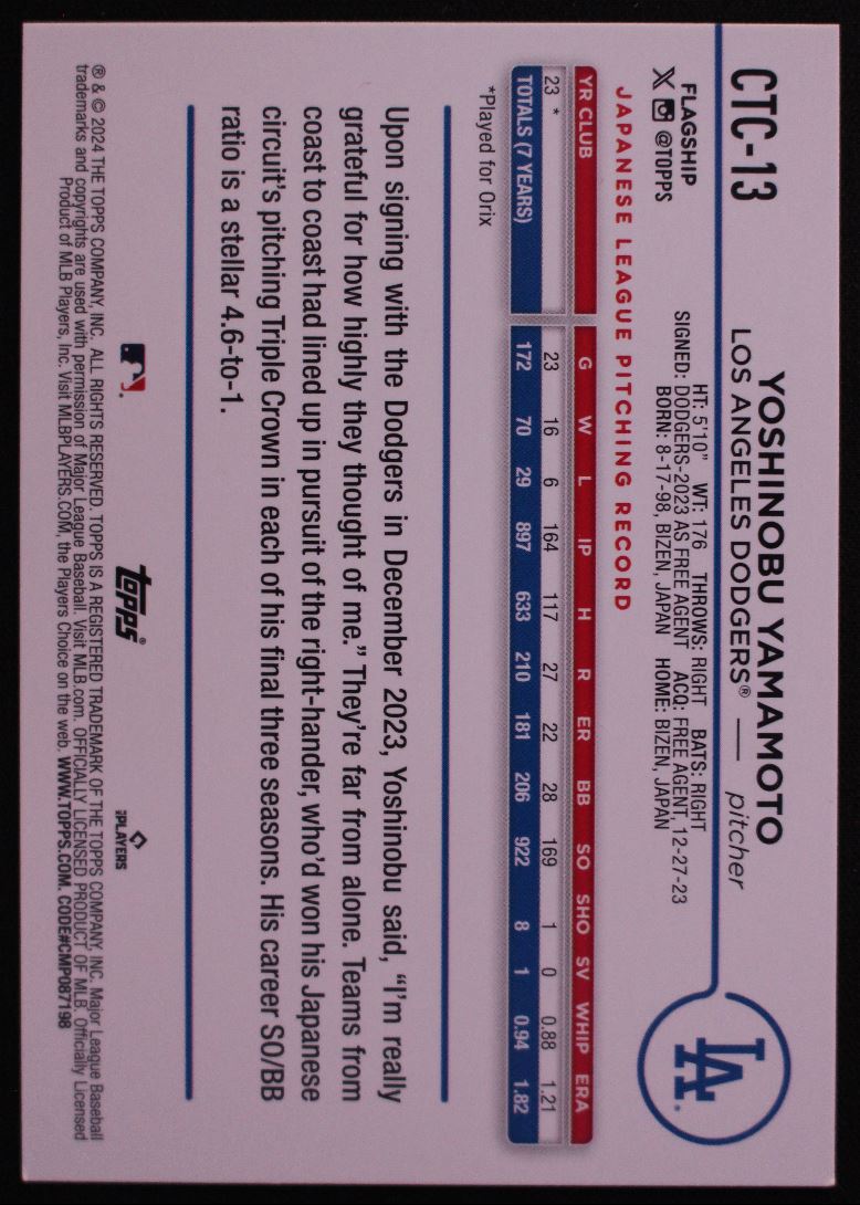2024 Topps Flagship Companion Yoshinobu Yamamoto Rookie Tampa Bay Rays #CTC-13