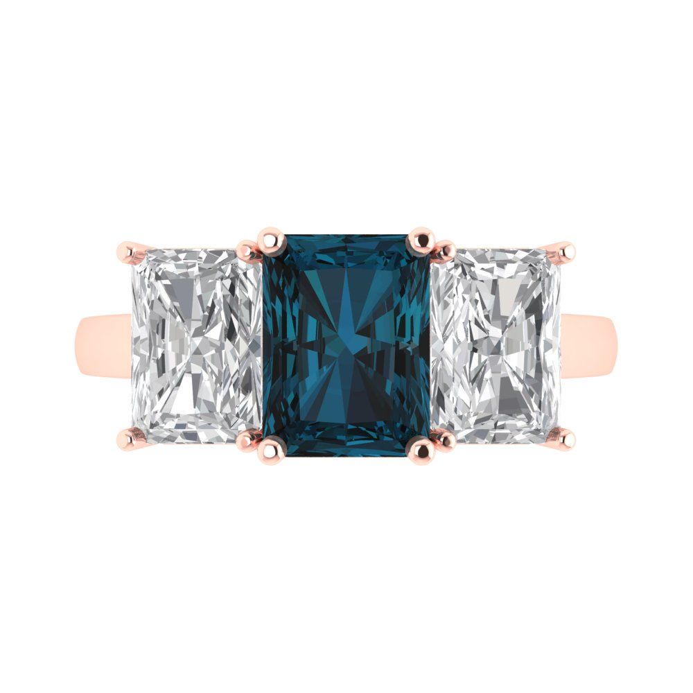 - ✔️ 4Ct Emerald Cut Natural London Blue Topaz Solid 14K/18K Gold Engagement Ring