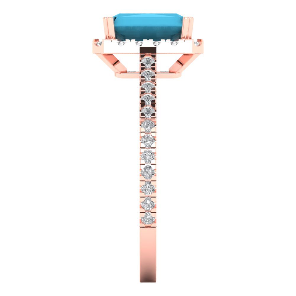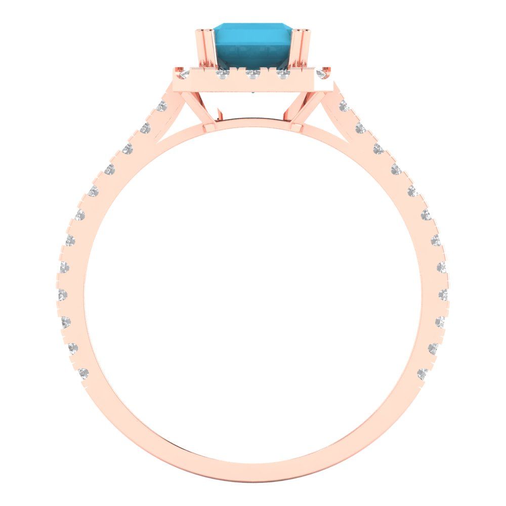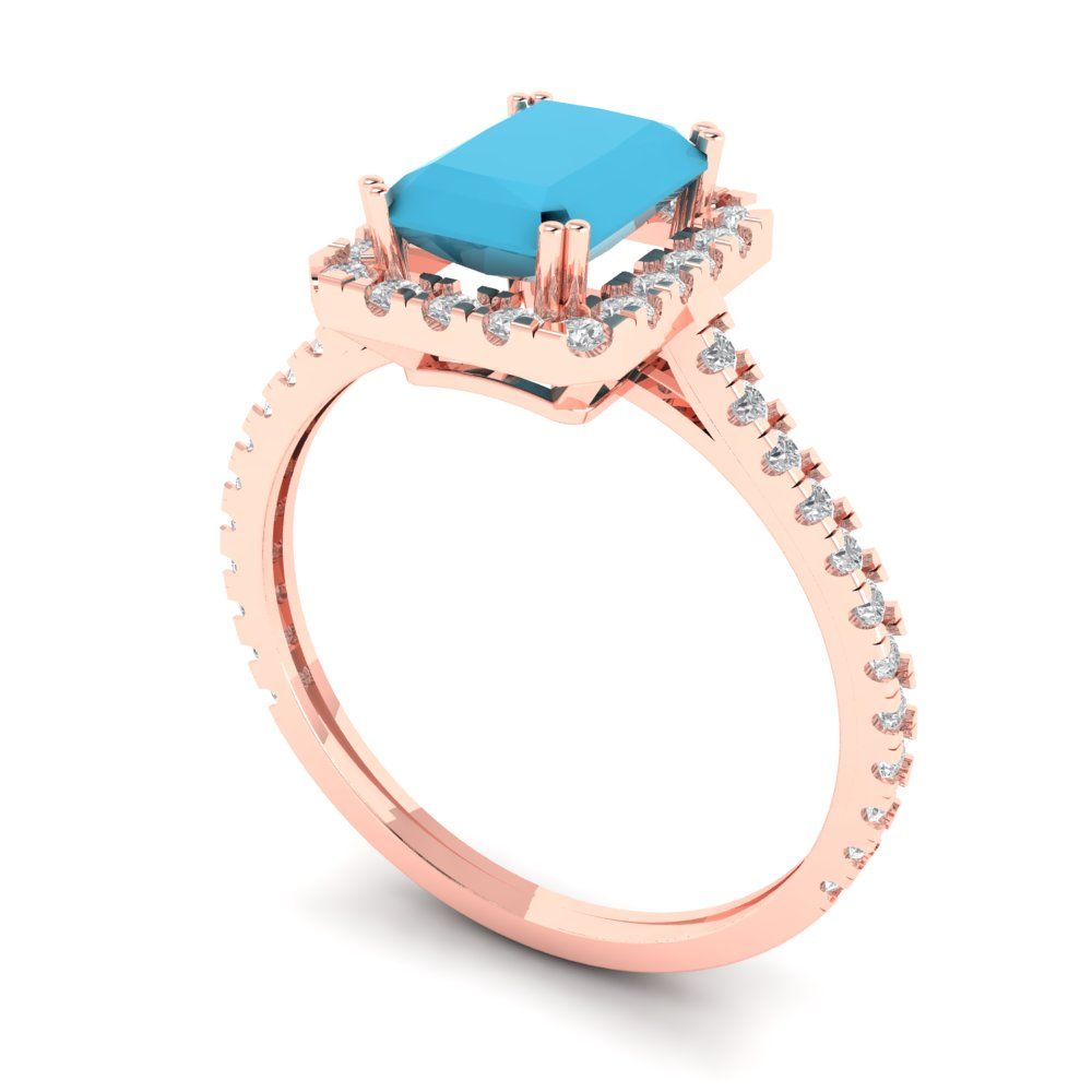 1.96Ct Emerald Cut Turquoise Solid Gold Halo Engagement Promise Statement Ring