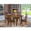 Rectangle-shaped kitchen table was designed in a new expressive style thanks to fresh and clean sides in addition to the modern lines. Small kitchen table together with dinette chairs are actually crafted of fine Asian solid wood for prime quality and therefore durability. Dining chair are available with either hardwood, microfiber upholstered, and lastly in faux leather seats to fit personal preference and desired design. Dinette features a standard expansion leaf for easy to lengthen the kitchen table. Slatted back kitchen dining chair design is strong, durable, and is an excellent option for established decor with any new kitchen. Kitchen table set is a choice between bold Mahogany or superb Saddle Brown finish. Table Dimensions: Length 42 / 54; Width 36; Height 29.5, Chair Dimensions: Length 17.5; Width 17; Height 38.5