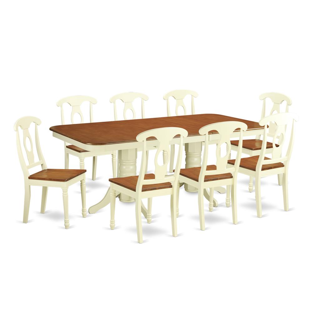 | Package Includes | Naport 9 piece Set with Napoleon table featured 18in butterfly leaf and 8 Kenley wood seat chairs |