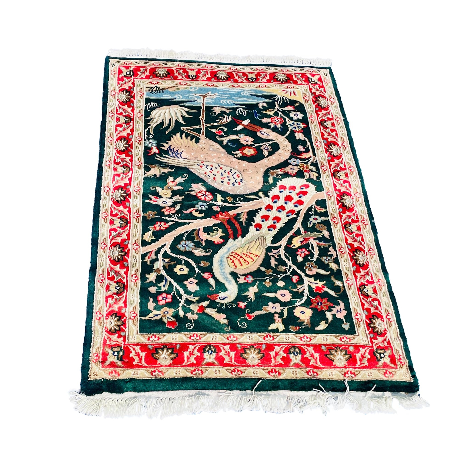 Al Ahmedani Linen Peacock Ostrich Tree of Life Rectangle Hand Knotted Area Rug Home Decor Wool Silk Indoor Carpet (4.1 x 2.8)'. For the perfect combination of unique, beautiful style and high-quality durability, the attention to detail on these beautiful contemporary rugs is noticed as soon as you lay eyes on the carpet. The rug appears dull when viewed from one side, and shiny from the other side. Please view the picture at the bottom to see the bright side of the rug. This rug can help brighten up a room if you do not get much sunlight. Simply put the bright side facing the seating area and it will make the room appear surprisingly bright. Wonderful design with multi-color, easily compatible with most home decor. Blended color schemes match well with all styles of furniture and art. Give your home an elegant touch with this area rug. Great for any decor, it adds texture to the floor and complements any decor. 100% Genuine Hand Knotted-Rug not hand tufted.
