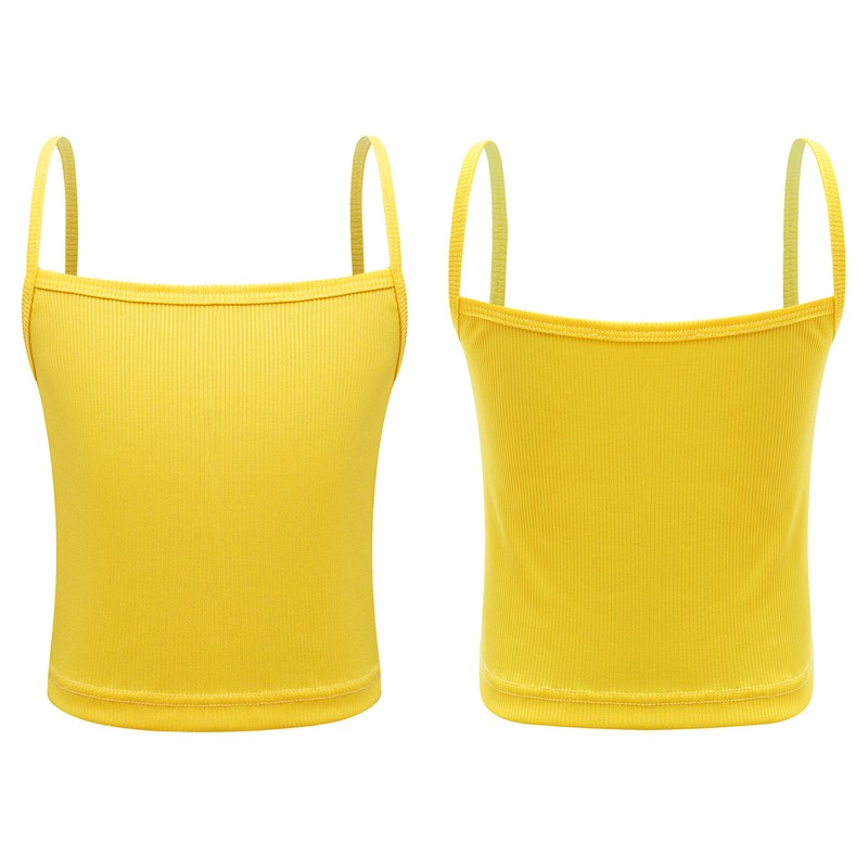 Kids Girls Spaghetti Straps Crop Top Ribbed Camisole Undershirt Dance Swimming