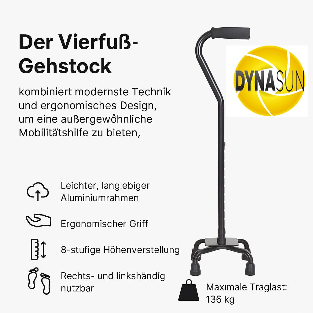 Il bastone da passeggio può essere facilmente usato sia per utenti destrimani sia mancini. Ciò lo rende una soluzione versatile per una vasta gamma di utenti. La base quadrupla da quattro piedi può essere ruotata secondo necessità per un utilizzo altrettanto comodo ed efficace per entrambe le mani.