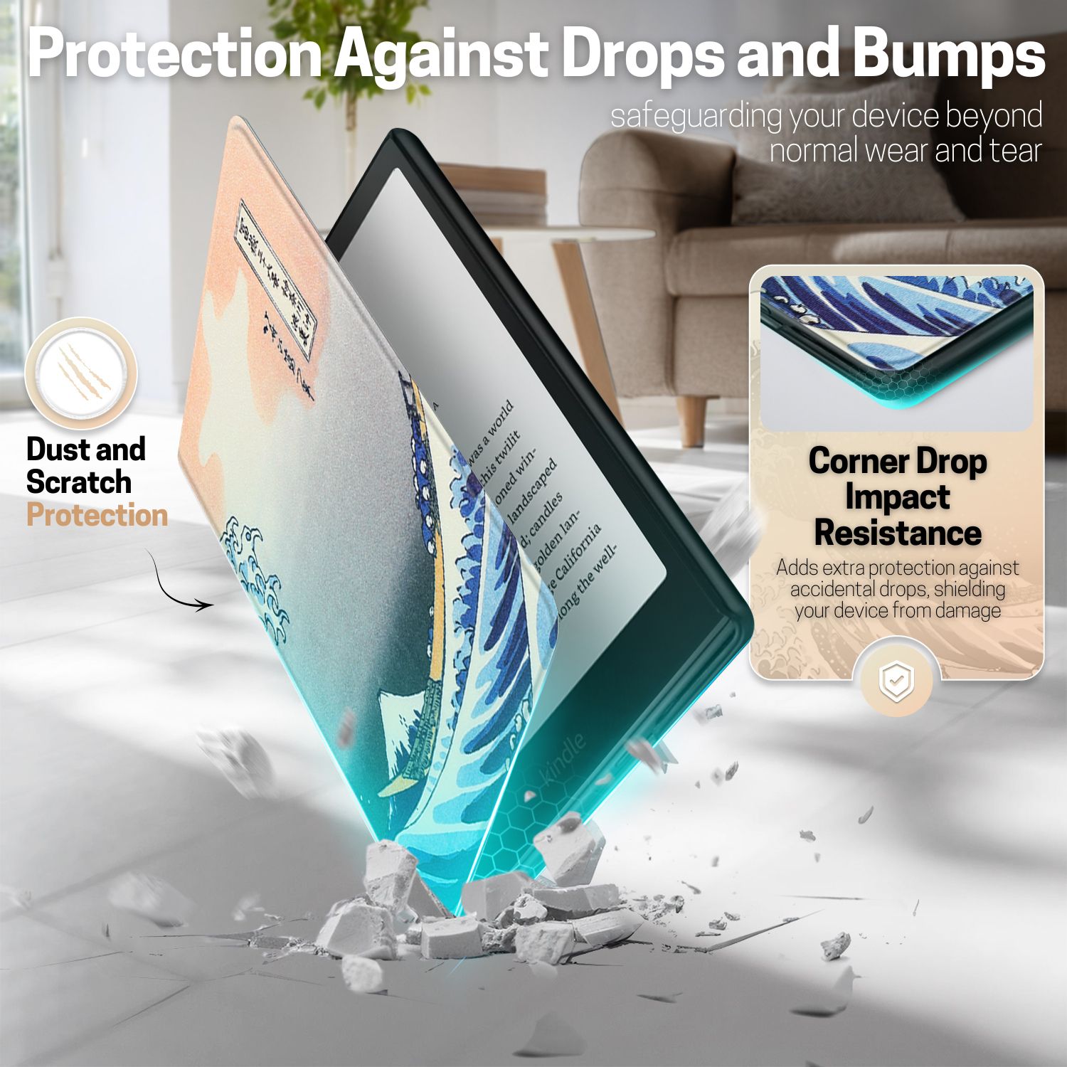 Slim, form-fitting cover to perfectly fit your Kindle Paperwhite (12th Generation) and Kindle Paperwhite Signature Edition to provide full front and back protection. The cover is easy to securely attach, remove, and folds back for easy one-handed reading. It automatically puts your Kindle to sleep when closed and wakes upon opening, making it easy to jump back into your book. Made of durable synthetic leather, this case is designed to be lightweight and protective, protect your device without adding unnecessary bulk, so you can hold it for hours of reading with minimal effort. With the nylon woven interior, the cover protects your Kindle and keeps the screen clean without adding bulk, making it perfect for taking your Kindle wherever you go.Feature: