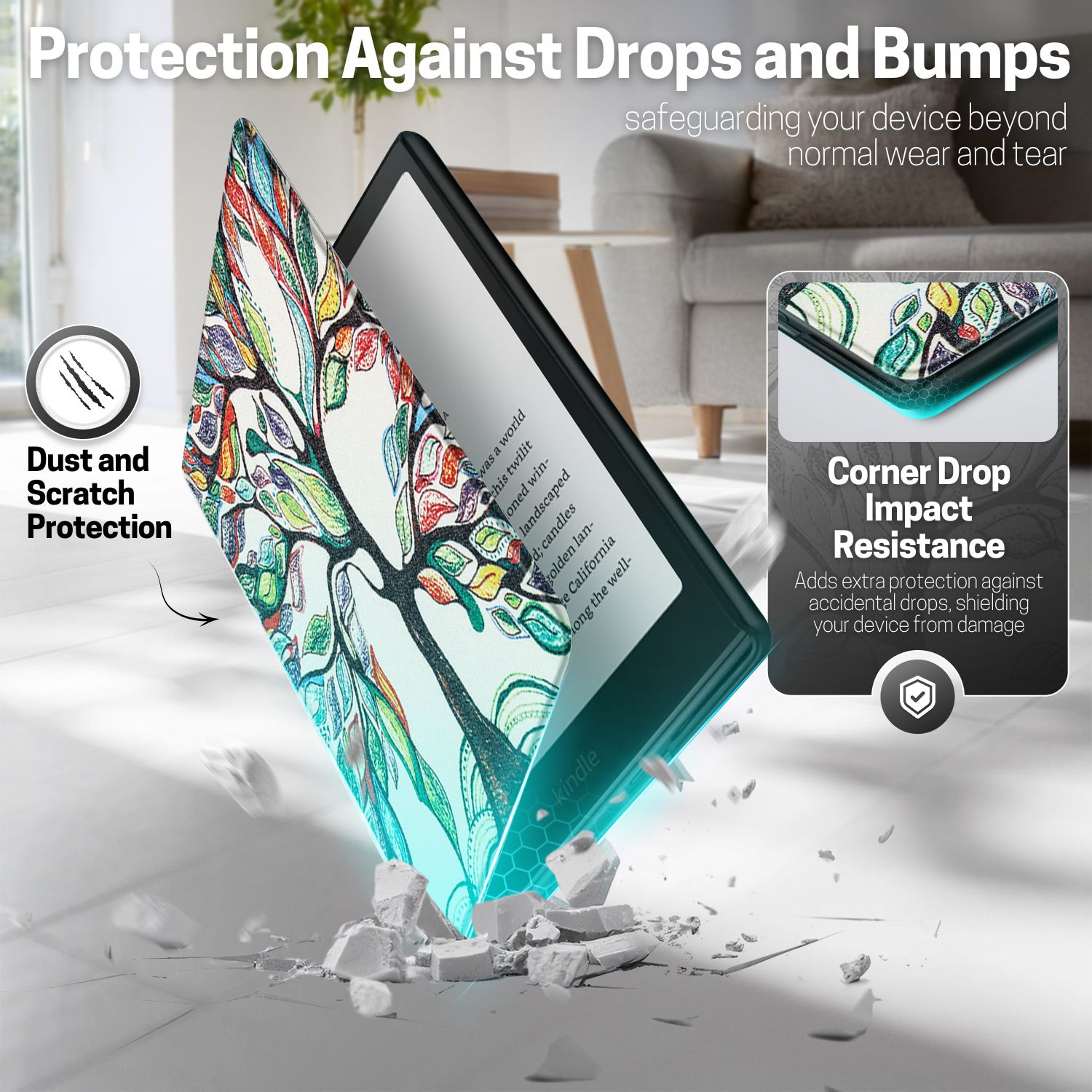 Slim, form-fitting cover to perfectly fit your Kindle Paperwhite (12th Generation) and Kindle Paperwhite Signature Edition to provide full front and back protection. The cover is easy to securely attach, remove, and folds back for easy one-handed reading. It automatically puts your Kindle to sleep when closed and wakes upon opening, making it easy to jump back into your book. Made of durable synthetic leather, this case is designed to be lightweight and protective, protect your device without adding unnecessary bulk, so you can hold it for hours of reading with minimal effort. With the nylon woven interior, the cover protects your Kindle and keeps the screen clean without adding bulk, making it perfect for taking your Kindle wherever you go.Feature: