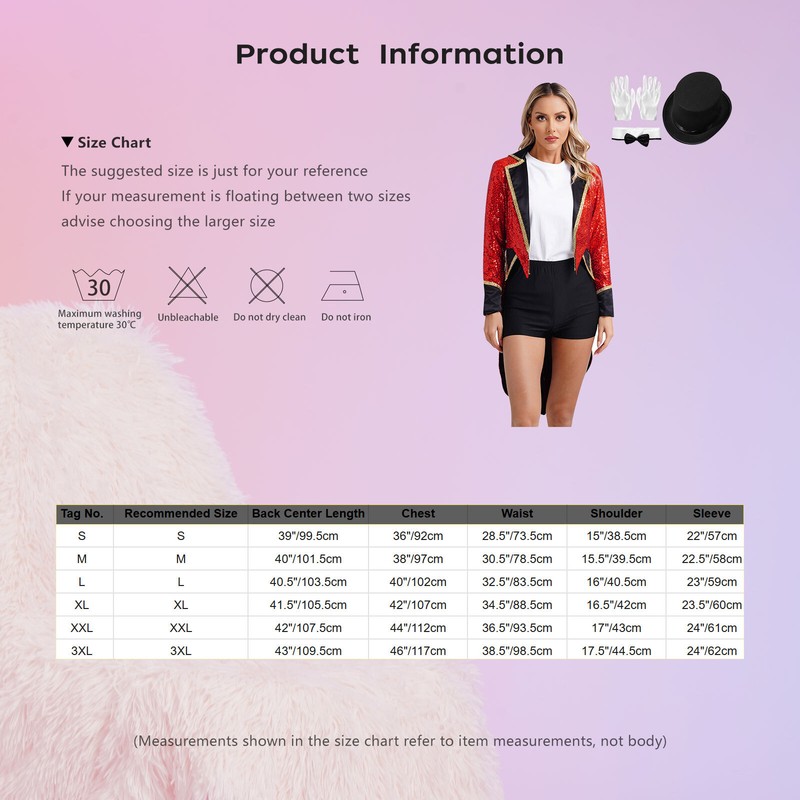 Size Chart: The suggested size is just for your reference. If your measurement is floating between two sizes, advise choosing the larger size. (Measurements shown in the size chart refer to item measurements, not body)