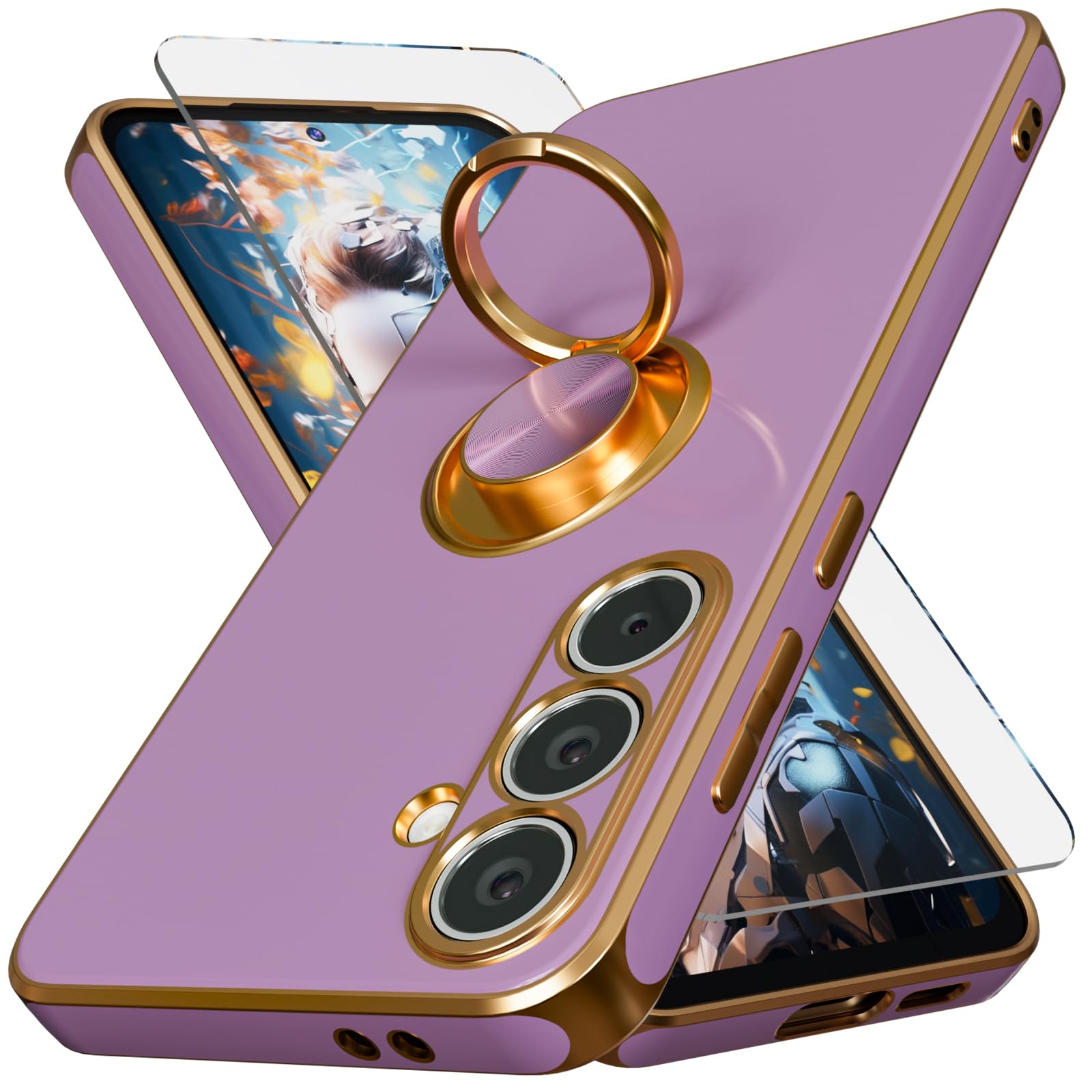 Funda Forro Cober Carcasa Protector Oro-Purpura Mujer Para Samsung Galaxy S24 FE