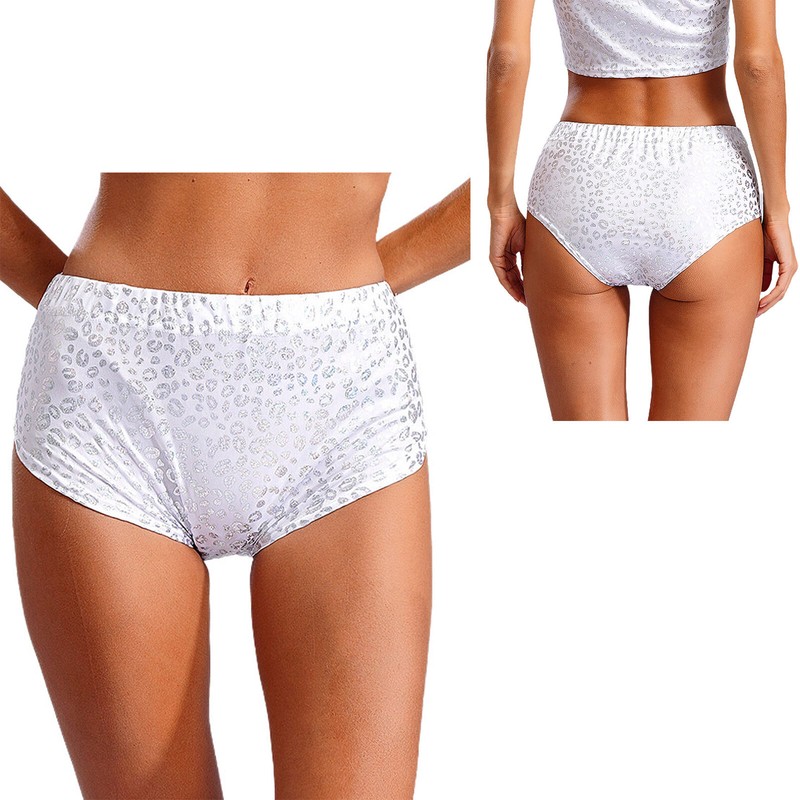 Women Shorts Leopard Print Hot Pants Casual Costume Soft Bottoms Shiny Clubwear