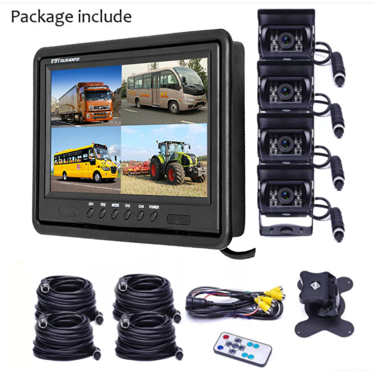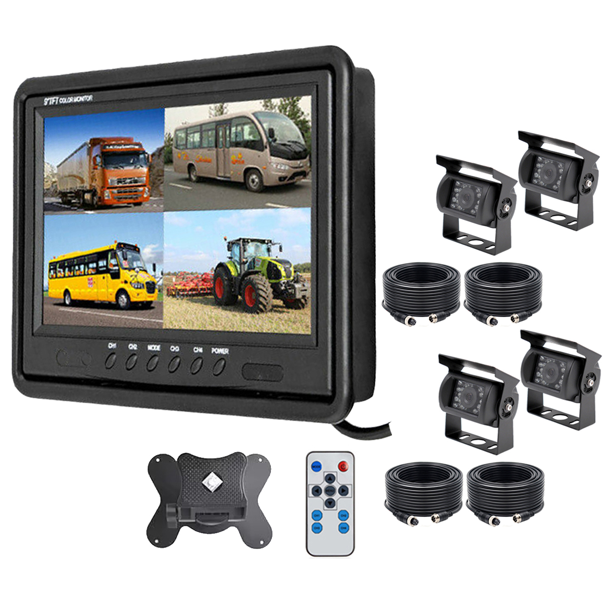 2. Large Wide Screen 9" Quad Monitor +4 Backup Cameras+4x10m Cables