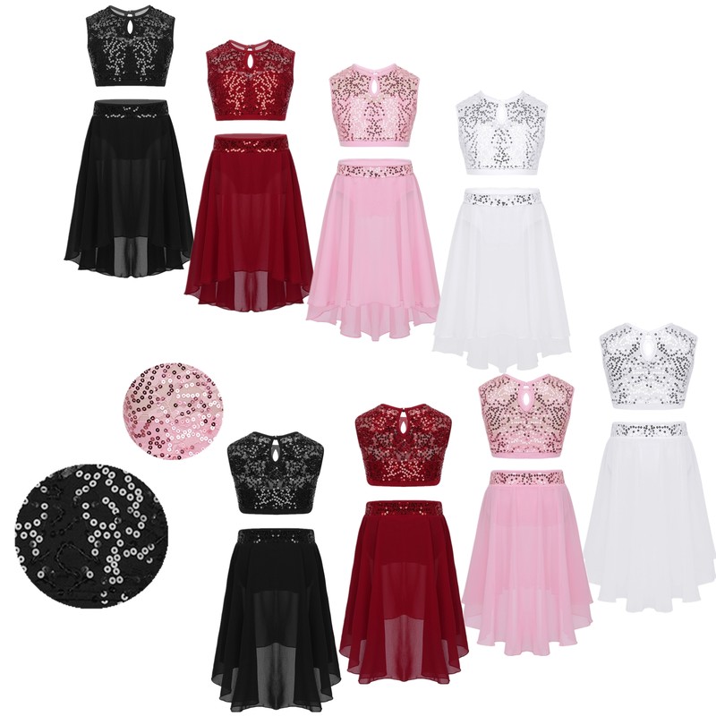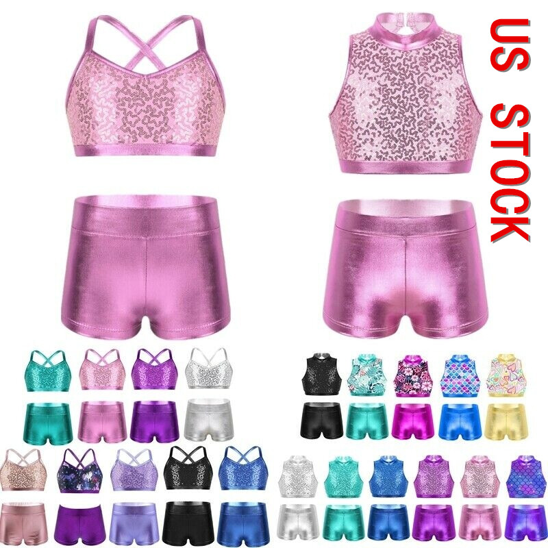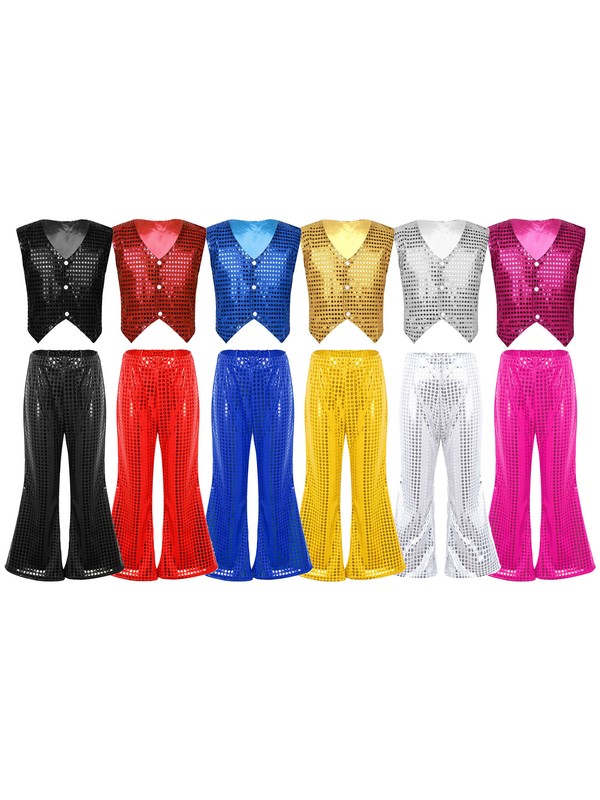 The two-piece stage performance outfit with sequins that sparkle under the light to brighten up any performance.