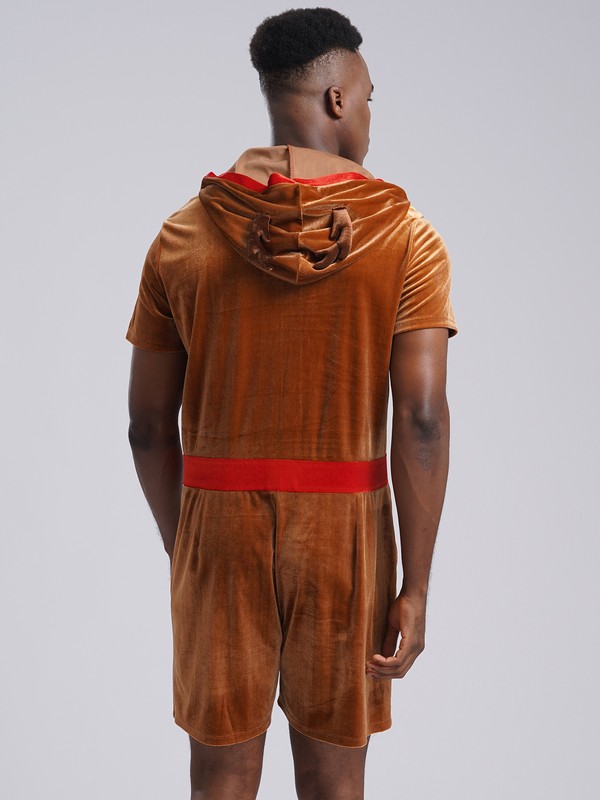 Adopts classic brown color with red color patchwork at front and waist, making you look more like an elk.