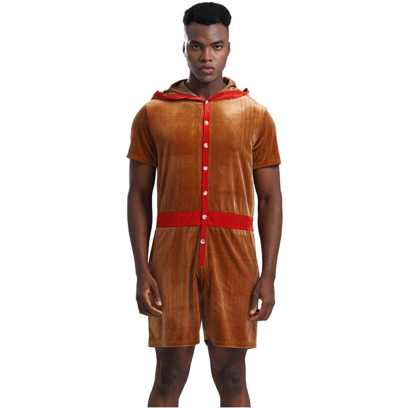 Designs with hooded, short sleeve, pockets, about knee length bodysuit, buttons closure is easy to put on.