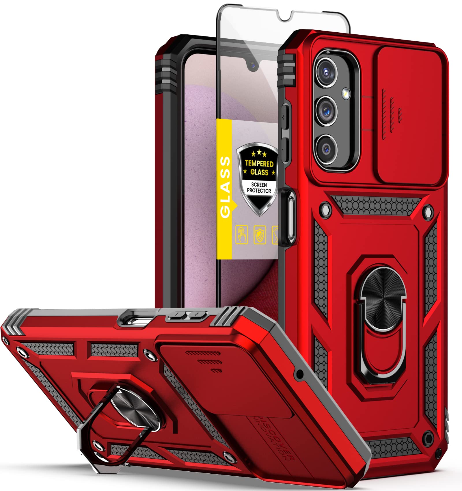 【Compatible】Diseñado para Samsung Galaxy A14 5G, protege contra los daños físicos a la pantalla de tu teléfono y la lente de la cámara. Intervalo con textura de neumático, evita la abrasión. También viene con 1 protector de pantalla de vidrio templado.