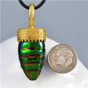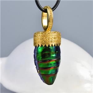 Don’t miss the opportunity to own this elegant handmade natural Jewel Beetle & shell Gold Vermeil over Sterling Silver pendant |