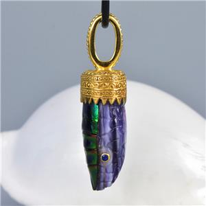 Magnificent JEWEL BEETLE SNAKE HEAD PENDANT with hand-carved Purple Clam shell, inlayed Blue Sapphire gemstone eyes and a 18K Gold Vermeil over solid 925 Sterling Silver bezel setting from our “Fauna & Flore Collection”