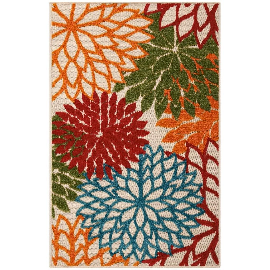 Add great coloration and comfortable texture to your space with this 3 x 5 green floral non skid indoor outdoor area rug. This rectangle shaped rug features a floral design in green to give it visual interest. A classic shape marries with good looking design for your space This superior Turkish rug represents the highest quality and is built to last. Area Rugs help to give warmth and sense of home to your space. Features. A latex backing covers this rug to finish the look, keep the fibers in place, and help to keep the rug from slipping. Due to the detailed construction of our rugs, both handmade and machinemade, sizes may vary by up to three inches in width or length. Flat weave with raised, cut patterns for a delightfully textured feel. Floral indoor/outdoor rug brings a cool tropical vibe to your home. Ideal for high traffic areas such as your living room, or outdoor spaces including your patio, porch, or deck. Machine made of stain resistant polypropylene in a highlow, 0.25 in, pileSpecifications. Rug Size 3 x 5 ft.. Pattern Floral. Product Resistances Neither Water or Fade Resistant. Floor Heating Safe No. Stain Resistant No. Rug Pad Recommended Yes. Pile Height 0.25. CPSIA Compliant No. Carbon Care Certification No. CPG Compliant No. EPA Safer Choice No. Indoor Advantage Certified No. ITTO Compliant No. Reclaimed Wood No. Recycled Content No. Rug Shape Rectangle. OekoTex Certified No. Better Cotton Initiative No. Technique Machine Woven. UV Protection No. Reversible Rug No. Lifestage Adult. Material Breakdown 100% Polypropylene. Asthma and Allergy Friendly Certified No. Cradle to Cradle Certifications No. Bluesign Certified No. USDA BioBased Product No. CRI Green Label Plus Certified No. Construction Machine Made. Purposeful Distressing Type No Distressing. Product Care Vacuum with no beater bar/rotating brush. Commercial Use No. Room Outdoor. NonSlip Backing Yes. Material Polypropylene. Assembly Required . Color Green and Ivory. Country of Origin Turkey. Dime