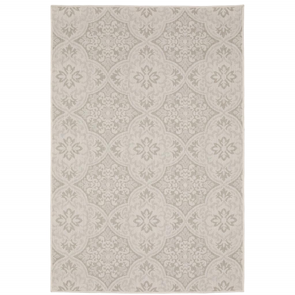 3' X 5' Gray and Ivory Floral Stain Resistant Indoor Outdoor Area Rug