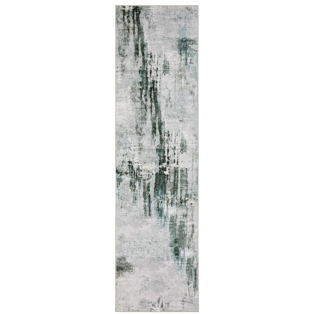 Add great coloration and comfortable texture to your space with this 2 x 8 silver grey teal blue and charcoal abstract printed stain resistant non skid runner rug. This runner shaped rug features a abstract design in silver grey teal blue and charcoal to give it visual interest. A classic shape marries with good looking design for your space Ideal for spaces with kids and pets, this rug is stain resistant to help repel stains and spilled liquids. Place this area rug against a hardwood or tile floor and it will enliven your living space with style and sophistication. 0.12 H x 24.02 W x 96.06 D. Specifications. Item Height 0.12 in.. Item Width 24.02 in.. Item Depth 96.06 in.. Item Weight 3.5 lbs. Backing Material Yes. Backing Material Details Rubber. Pattern Abstract. Product Resistances Fade Resistant. Floor Heating Safe Yes. Stain Resistant Yes. CPSC 16 CFR 1630 Compliant Yes. CPSC 16 CFR 1631 Compliant Yes. Pile Height 0.04. Rug Shape Runner. Technique Printed. Construction Machine Made. Product Care Vacuum with no beater bar/rotating brush. Room Living Room. NonSlip Backing Yes. Size 2 x 8. Material Polyester. Color Multi Color