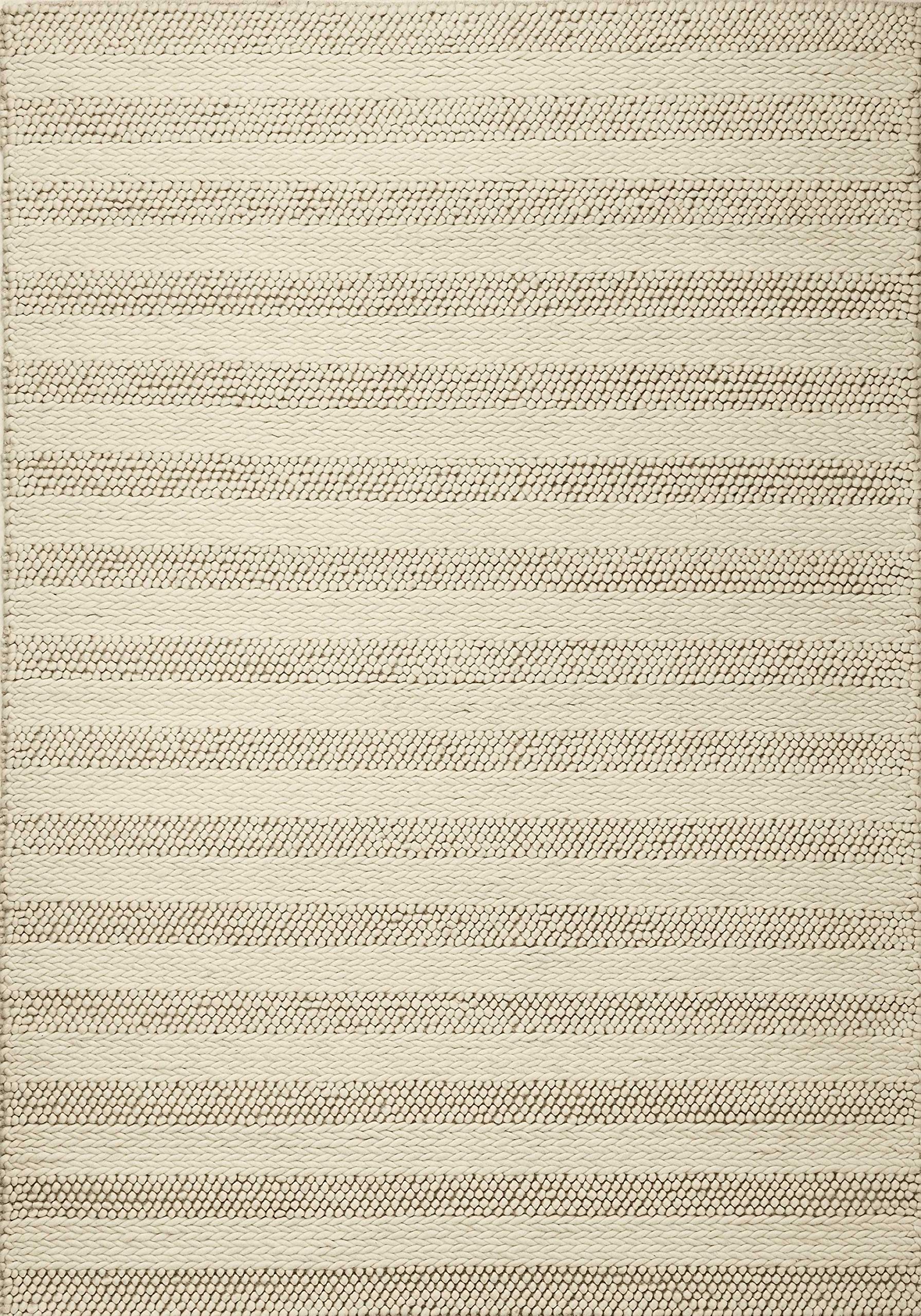 3' X 5' White Ivory Hand Woven Knobby Cornish Stripe Indoor Area Rug