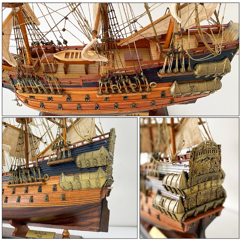 PREMIUM QUALITY:Dimensions: 22.8"L x 24"H x 7.5"W = 58cmL x 60cmH x 19cmW Highlights about this Wasa model: - This Wasa ship model is made by using plank on a frame from pine wood & coated with clear varnished. The shines on the hull is beautiful & historic. - Due to the risky shipment so the masts are fold flat down for safe shipping , we enlcose the instruction guide how to set it up in 5 minutes in the package - We are the manufacture of these beautiful & detailed ships in high quality since 1999 in Vietnam , we have many various models, sizes , scales and almost of them are available in our local stores . If you have any question please feel free to contact us . ![]() OUR PROMISE✅ This Swedish Wasa Vasa warship model is the amazing ideal for gift or décor/ decorate home office, bars, clubs, libraries , reading rooms, indoor, living room, ship vehicle nautical marine decoration, collection, display