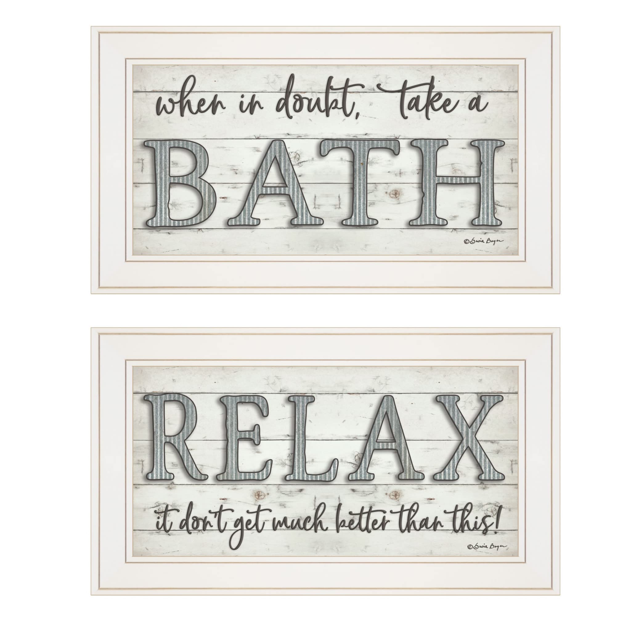 This set of two when in Doubt Take A Bath Relax white framed print bathroom wall art will add a beautiful decorative accent to your decor. This print is a visual artistic expression that allows you to decorate your space in style. Reproduced for you on paper, this hanging decorative accent will be a trendy and fashionable way to dress your walls. Adding this hanging wall art to make your room feel more attractive. Instantly liven up your space with this art. that brings color and dimension to your walls. 12" H x 21" W x 1" D