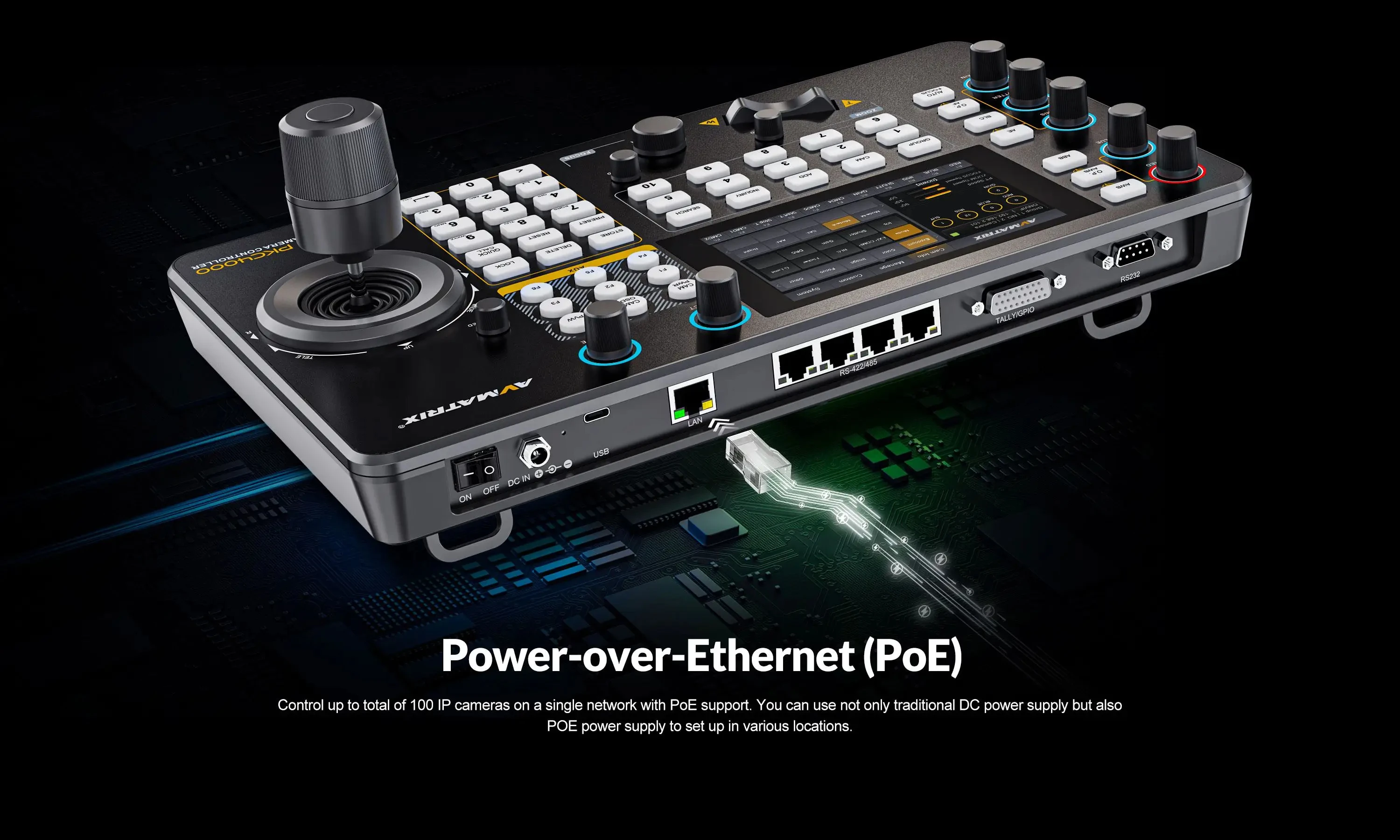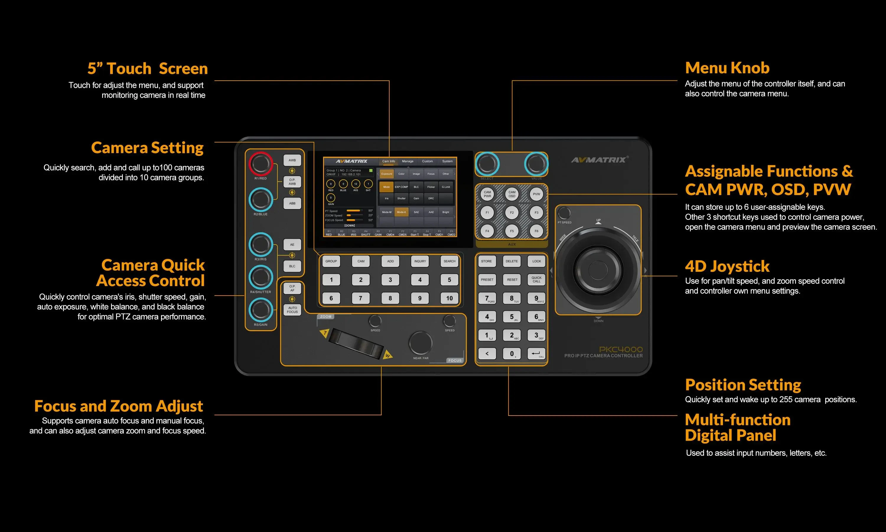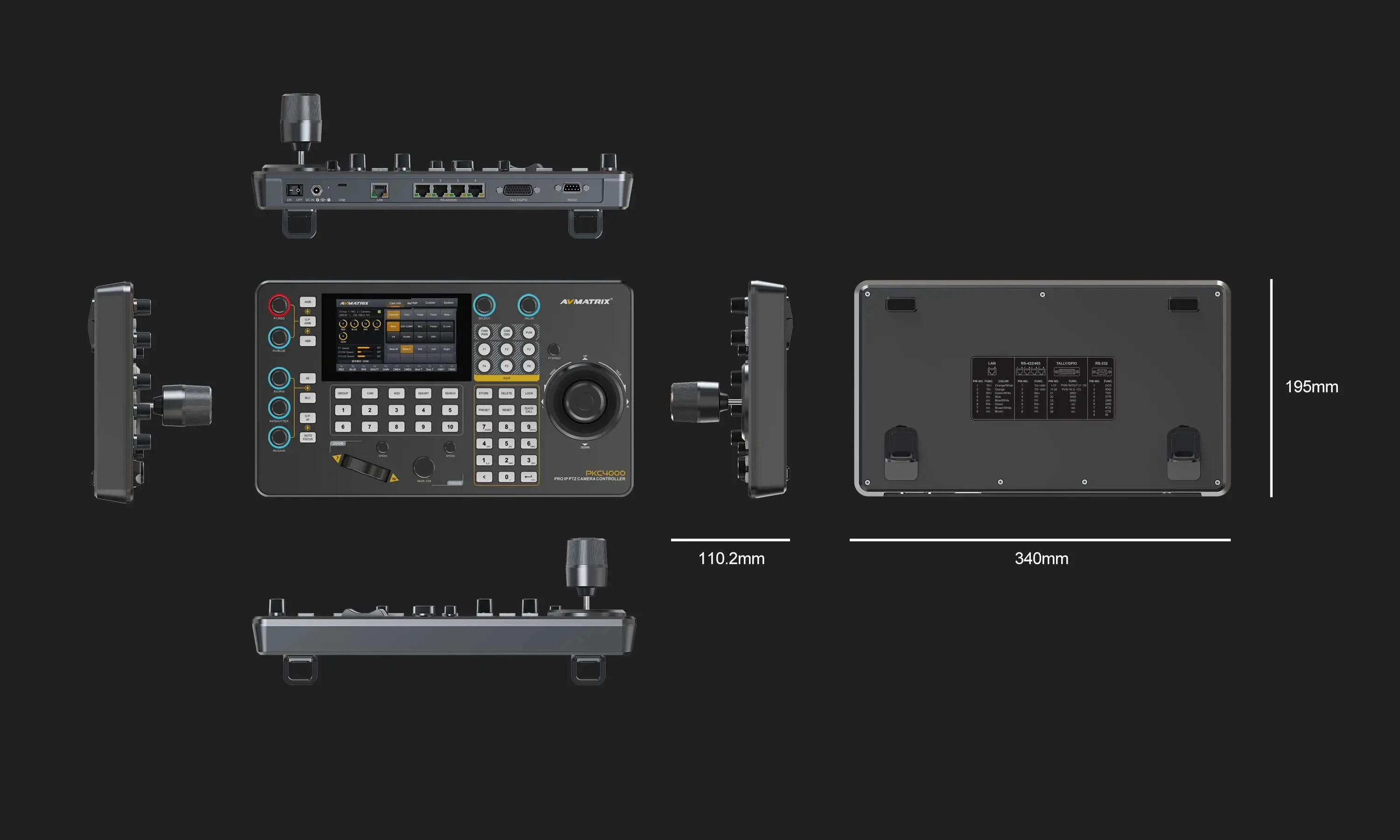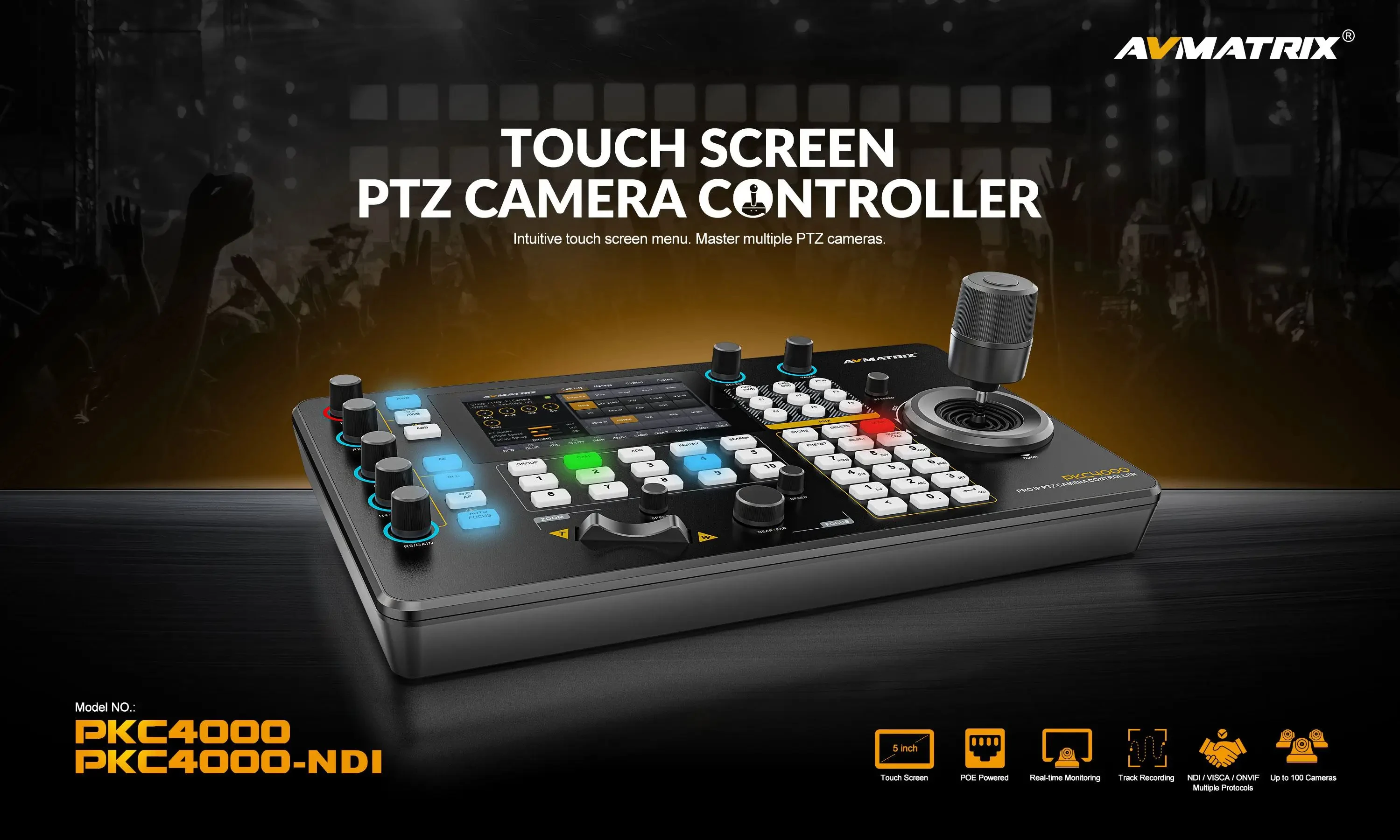 AVMATRIX PKC4000-NDI PTZ Camera Controller Keyboard Joystick 5 inch Touch Screen